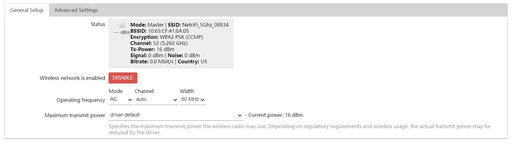 Wireless Network: Master "Netrifi_5ghz_0000" (wlan1)