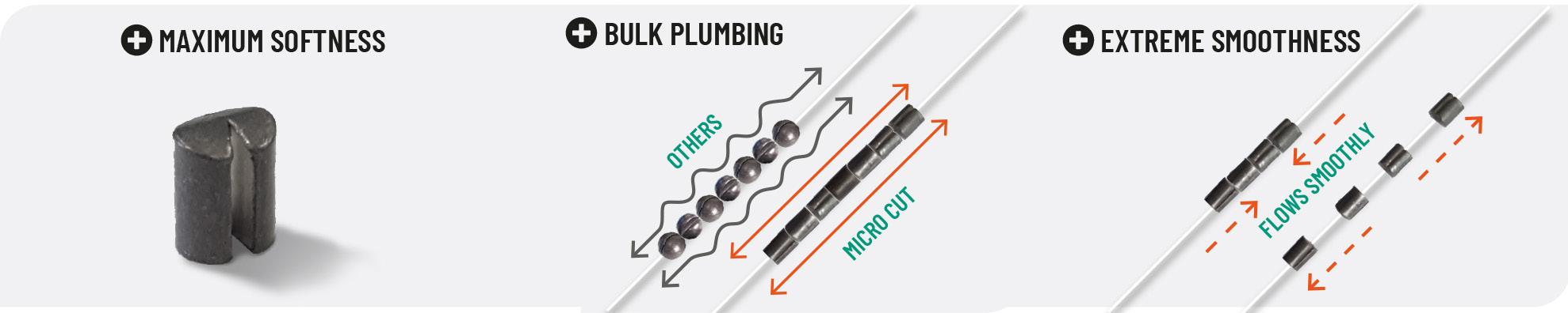 Polyurethane: high-density, waterproof, robust and lightweight closed-cell foamused for the construction of float bodies as an alternative to Balza. REMOVABLE BRASS WEIGHTS