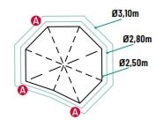Perforated aluminium feet: absolute versatility on any terrain, even wet or uneven.