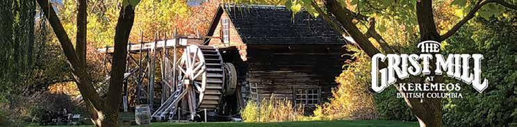 music events spice up the summers. Step back in time when you visit the Grist Mill and Gardens in Keremeos, a Provincial Heritage Site and the last working water wheel flour mill in British Columbia from 1877.