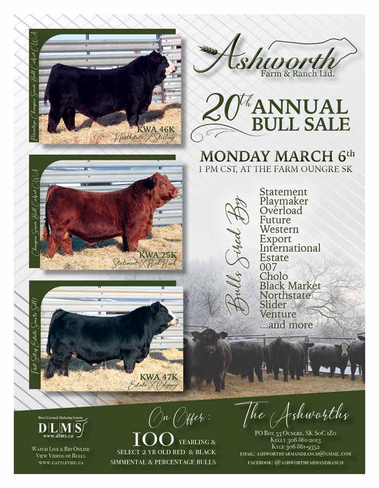 Saturday, April 1 Transcon’s Advantage Bull Sale Saskatoon, SK