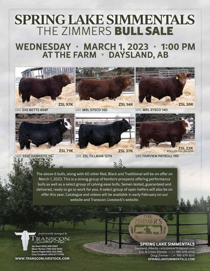 Wednesday, March 1 Spring Lake Simmentals, The Zimmers - Bull Sale Daysland, AB