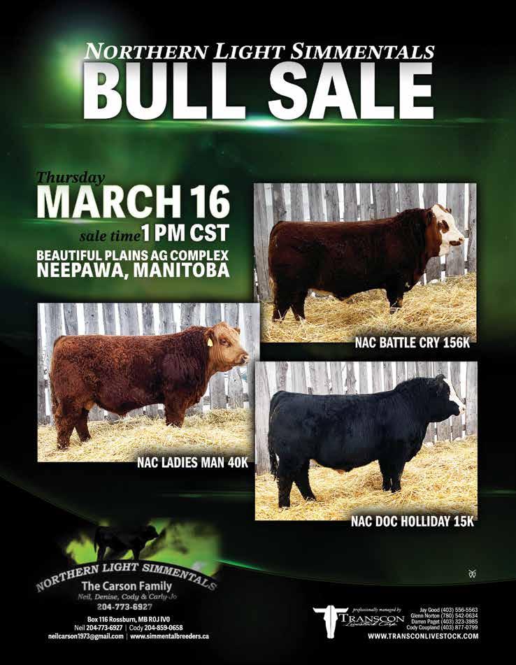 Thursday, March 16 Northern Light Simmentals Bull Sale Neepawa, MB