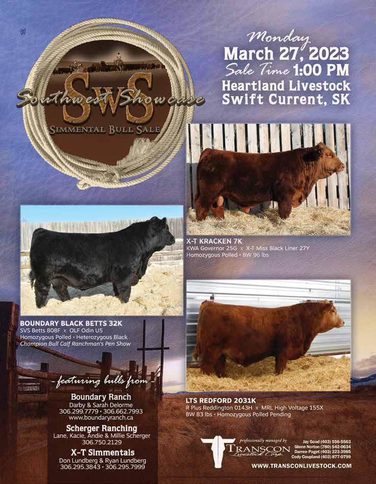 Monday, March 27 Southwest Showcase Simmental Bull Sale Swift Current, SK