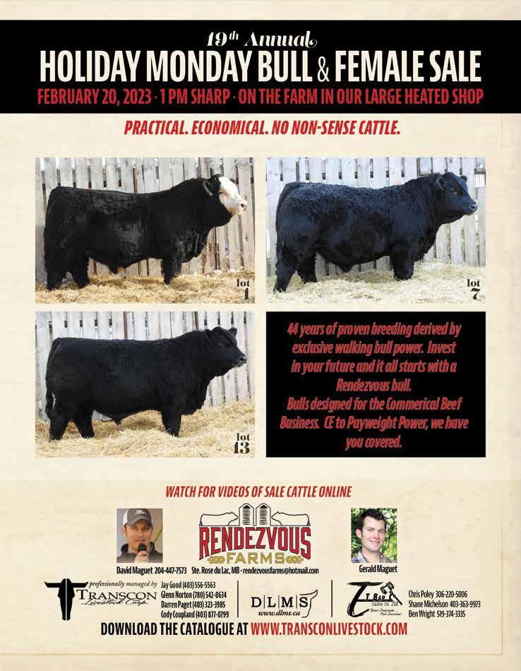 Monday, February 20 Rendezvous Farms 19th Annual Holiday Monday Simmental Bull & Female Sale Ste. Rose du Lac, MB