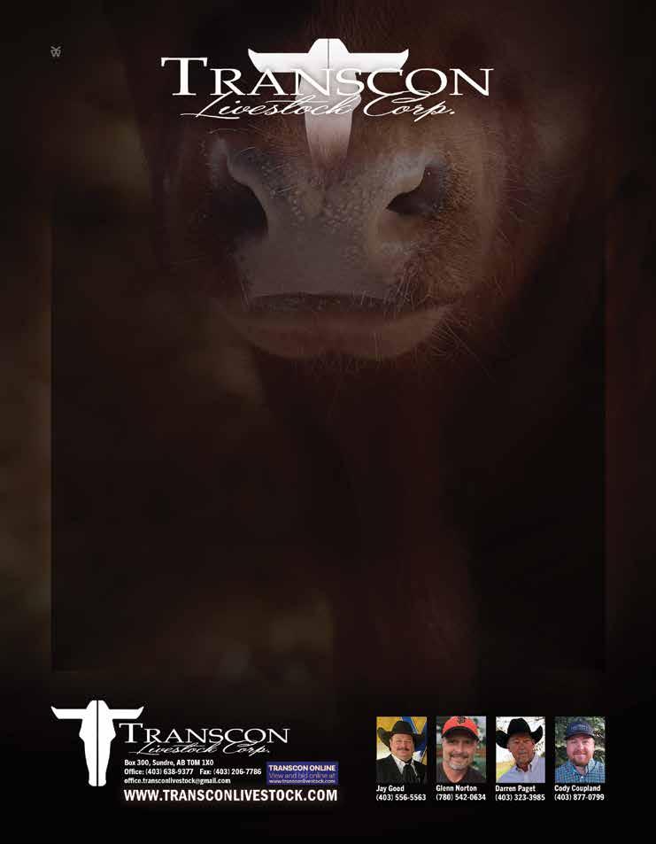 Saturday, March 11 Transcon’s Red Deer County Bull Sale Innisfail, AB