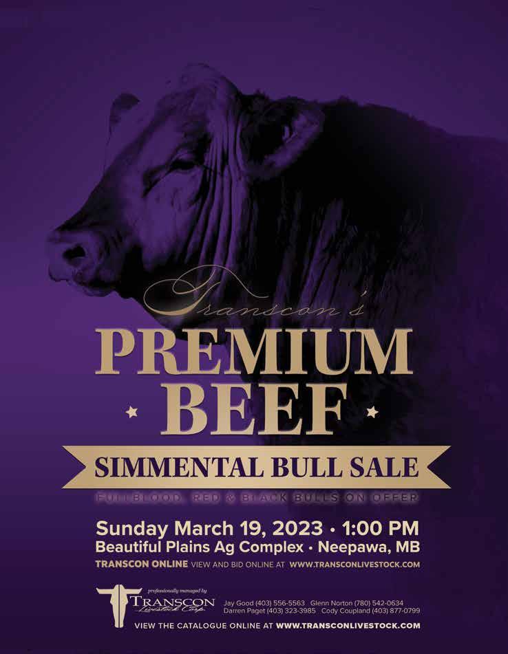 Sunday, March 19 Transcon’s Premium Beef Simmental Bull Sale Neepawa, MB