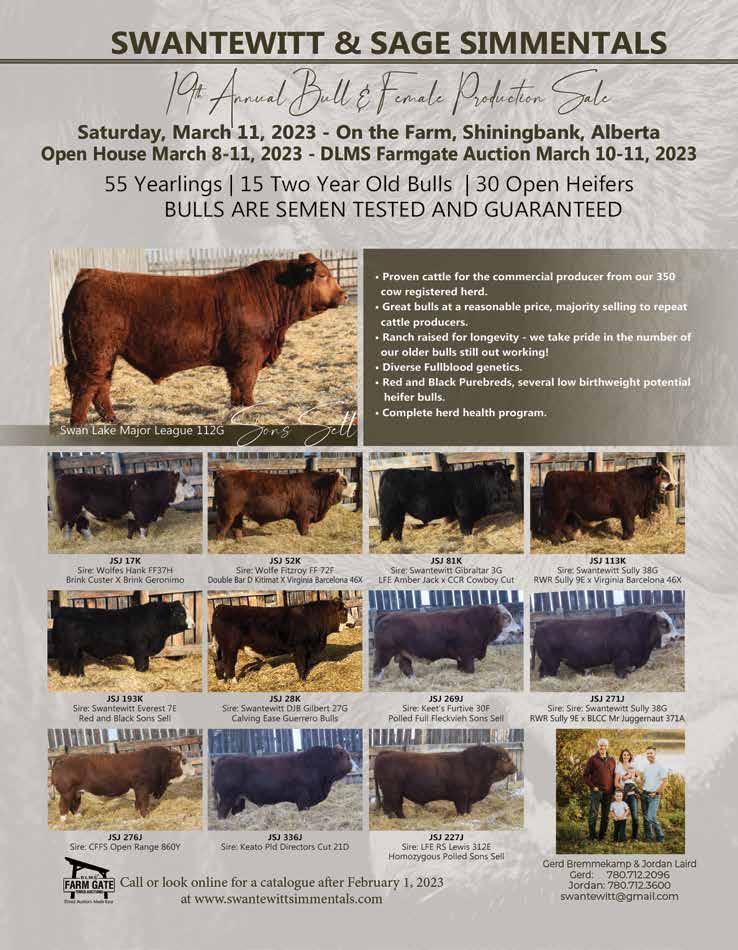 s Swantewitt & Sage Simmentals 19th Annual Bull & Female Production Sale, Shiningbank, AB
