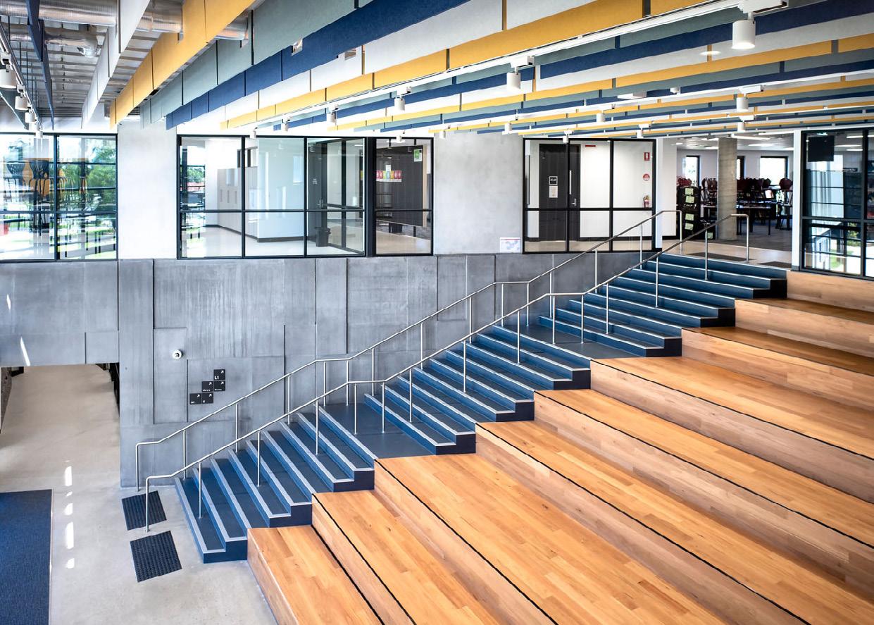 The regional development is the result of an amalgamation of four secondary schools built on the current Shepparton High School site. Catering for 2,700 students, the precinct provides 24,034sqm GFA across six buildings. The pedagogical response was a “schools within schools” (SWIS) model; realising a complex program comprising of informal and formal teaching spaces, STEAM facilities; with performing arts, wellness, and gymnasium centre designed for after-hours community use.