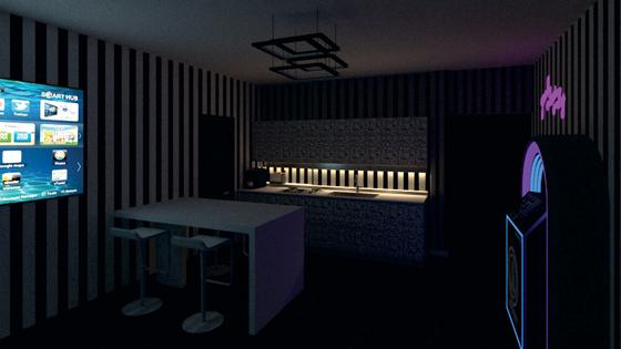 Mentre si era costretti a stare chiusi nelle mura di casa, è stato un momento importante per TikTok. Il committente Giorgio, famoso tiktoker da ormai 4 anni, ha deciso di creare un posto autonomo dove registrare i suoi contenuti digitali. Ovviamente la casa sarà il posto più "instagrammabile", più particolare possibile: scritte neon, strisce led, pattern optical, arredi di design...