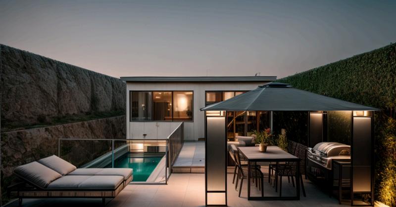 Infine dall’ufficio si può uscire nell’ immenso giardino con piscina e area attrezzata per mangiare.