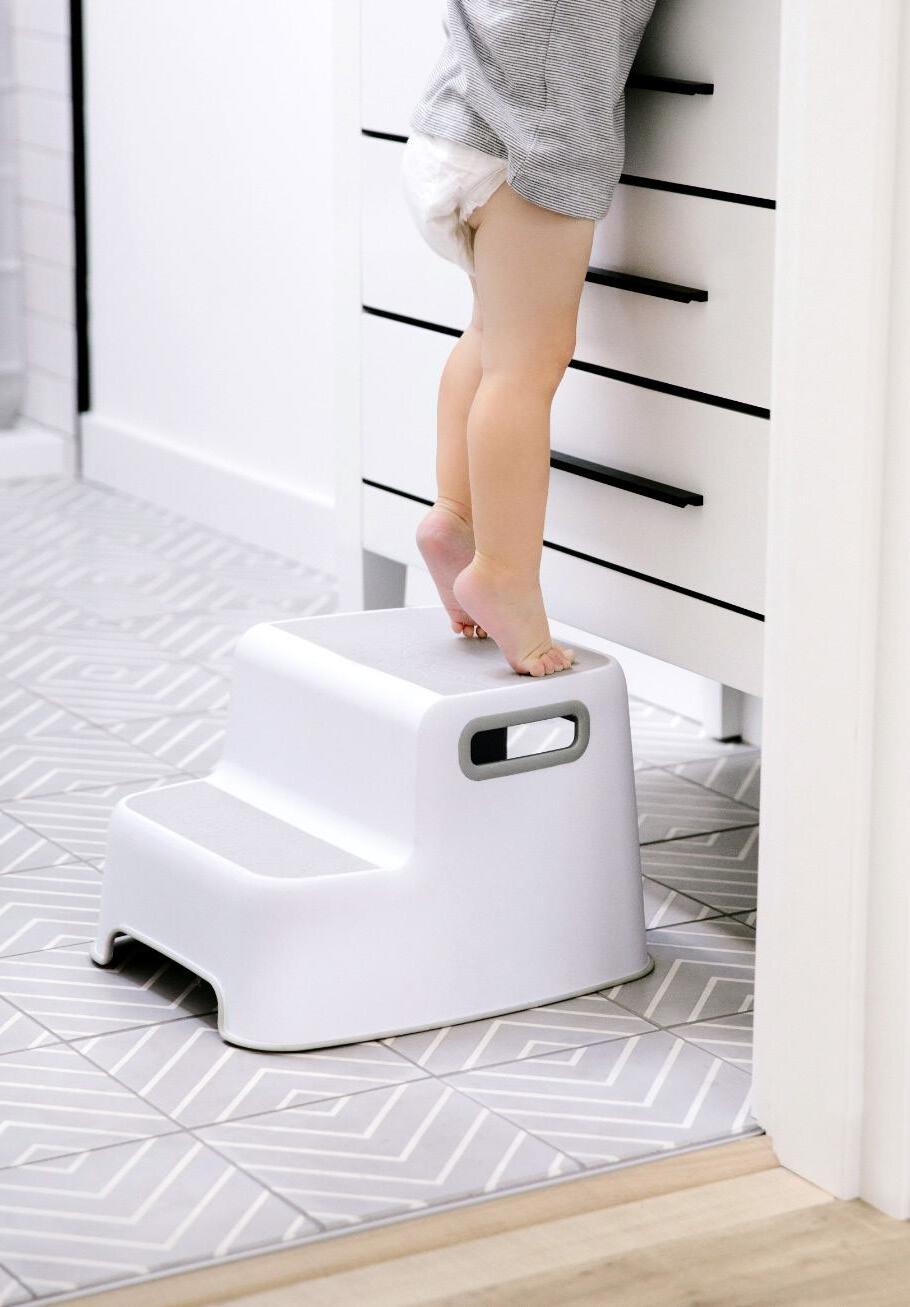 Su superficie de goma texturizada mantiene a los pequeños seguros en el banco.