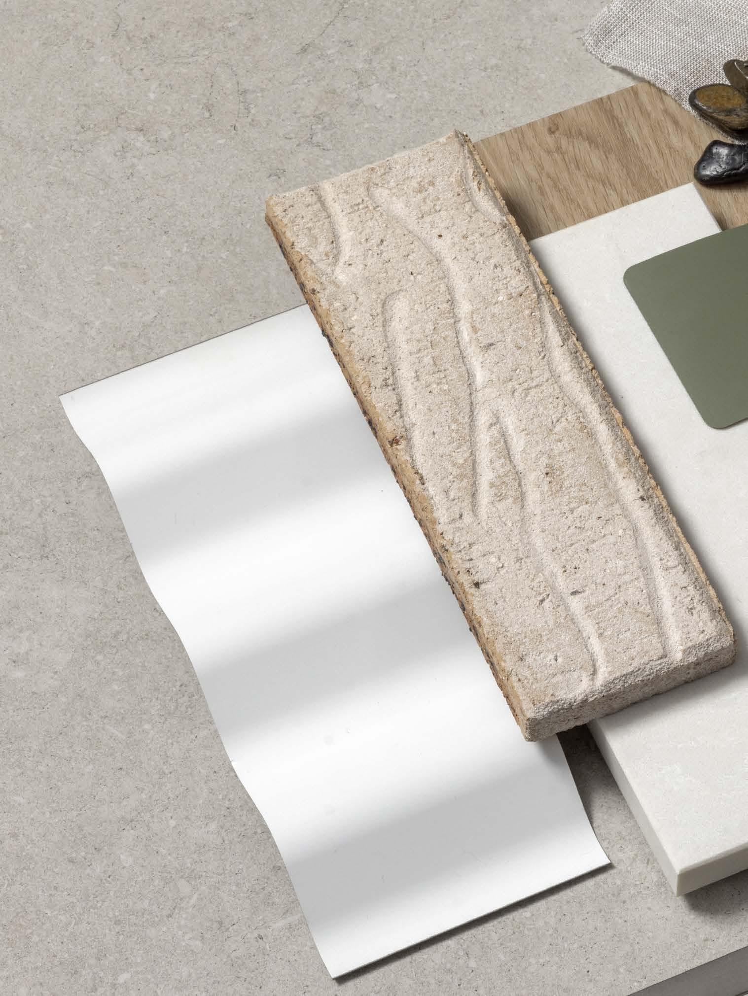 Large format tiles in neutral tones help to create a seamless, spacious feel, while matte or satin finishes are preferred to avoid glare and to maintain an understated, organic look.