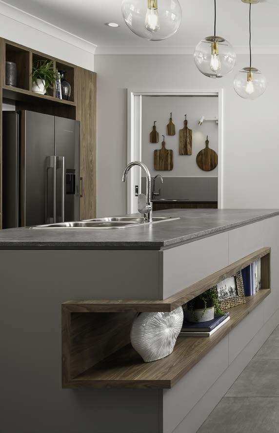 Minimalist design expertly maximises storage and integrated solutions that keep surfaces clear and organised. Under mount basins help to create a streamlined look that's also easier to clean and maintain.
