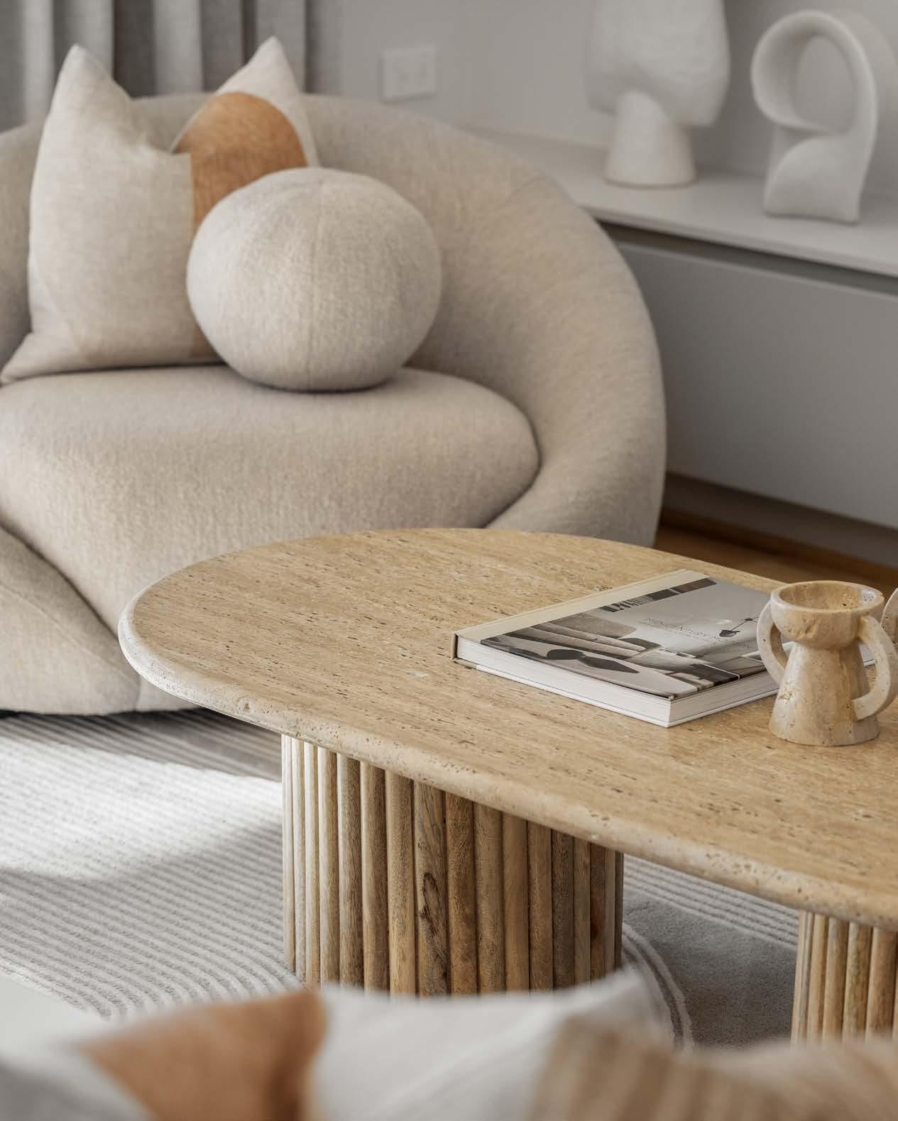 While Modern design is characterised by surfaces that are hard and dark, the space is expertly softened and given a homely feel with cosy fabrics such as wool and boucle featured across furniture, rugs and throws.
