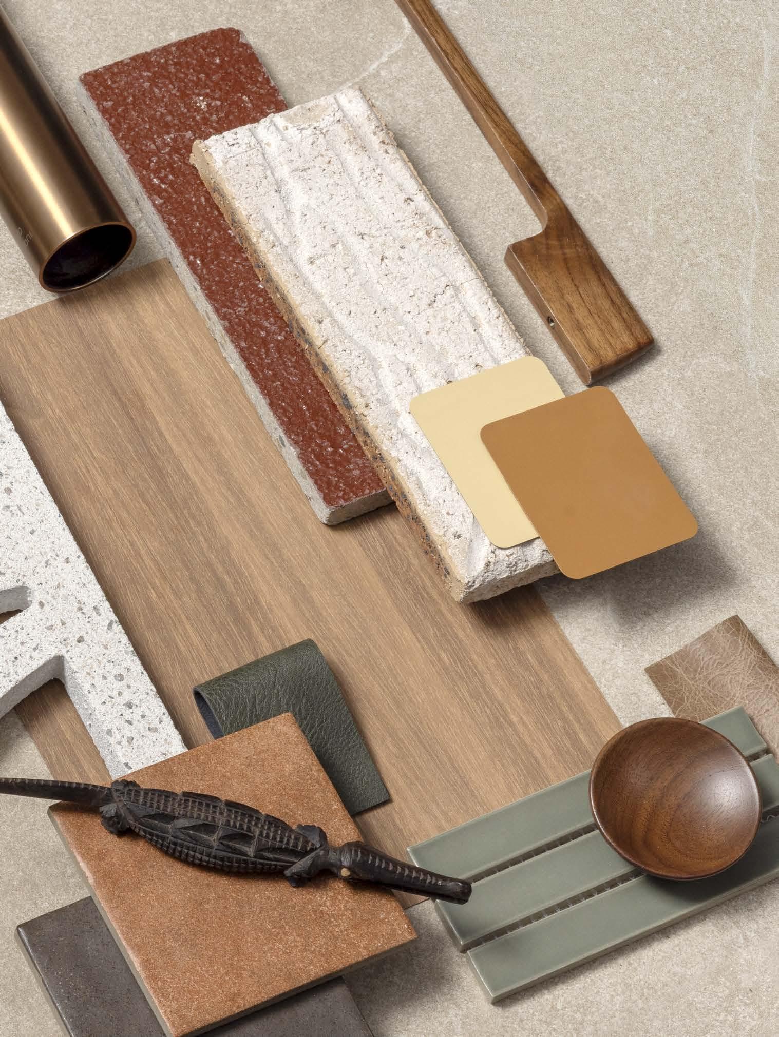 Palm Springs blends natural materials like textured glass and stone with a vibrant colour palette to create a laidback oasis. Sandy beiges, sunny yellows, sky blues, and vibrant oranges reflect the desert’s natural hues, while bold accent colours like turquoise, pink, and lime green add lively energy to the interiors.