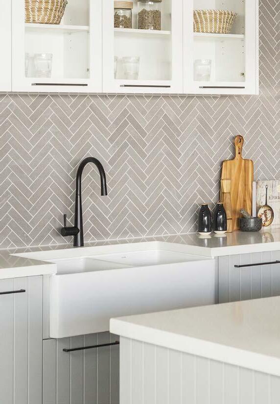 Patterned, encaustic tiles are a hallmark of Hamptons design. Keep them as floor tiles or carry them up to your splashback for a beautiful feature. Alternatively, a herringbone pattern delivers a luxurious finish.