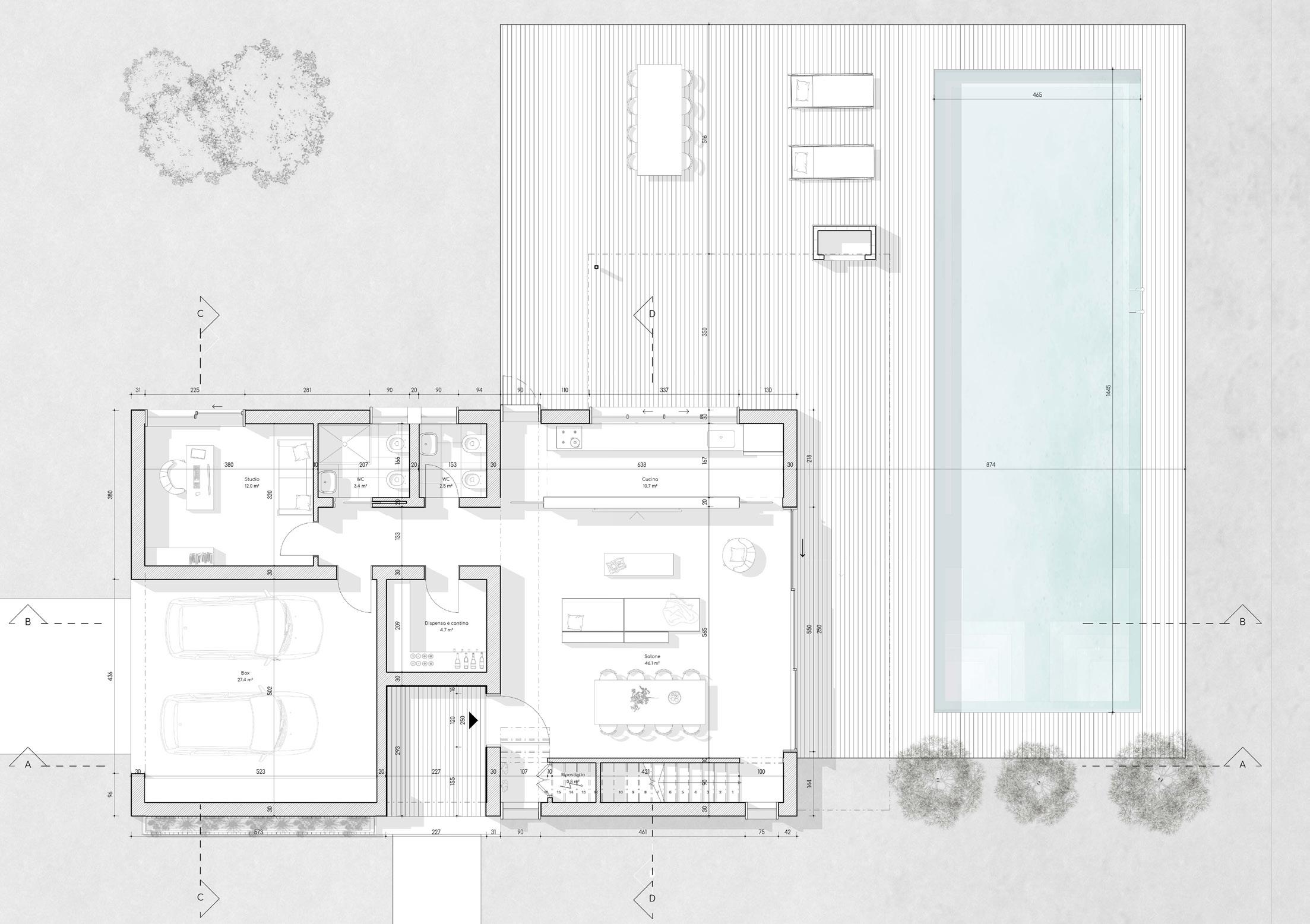 The project was designed looking for a combination between the repetition of real estate units characterized by the repetition of two unique types, and the creation of internal and external common spaces which are characterized by vegetation. The vegetation, the fulcrum of the project, wants to create a courtyard that is not only appreciated by the residents, but which relates to the public space in a dynamic way. So as to dissolve the limits between public and private spatiality.