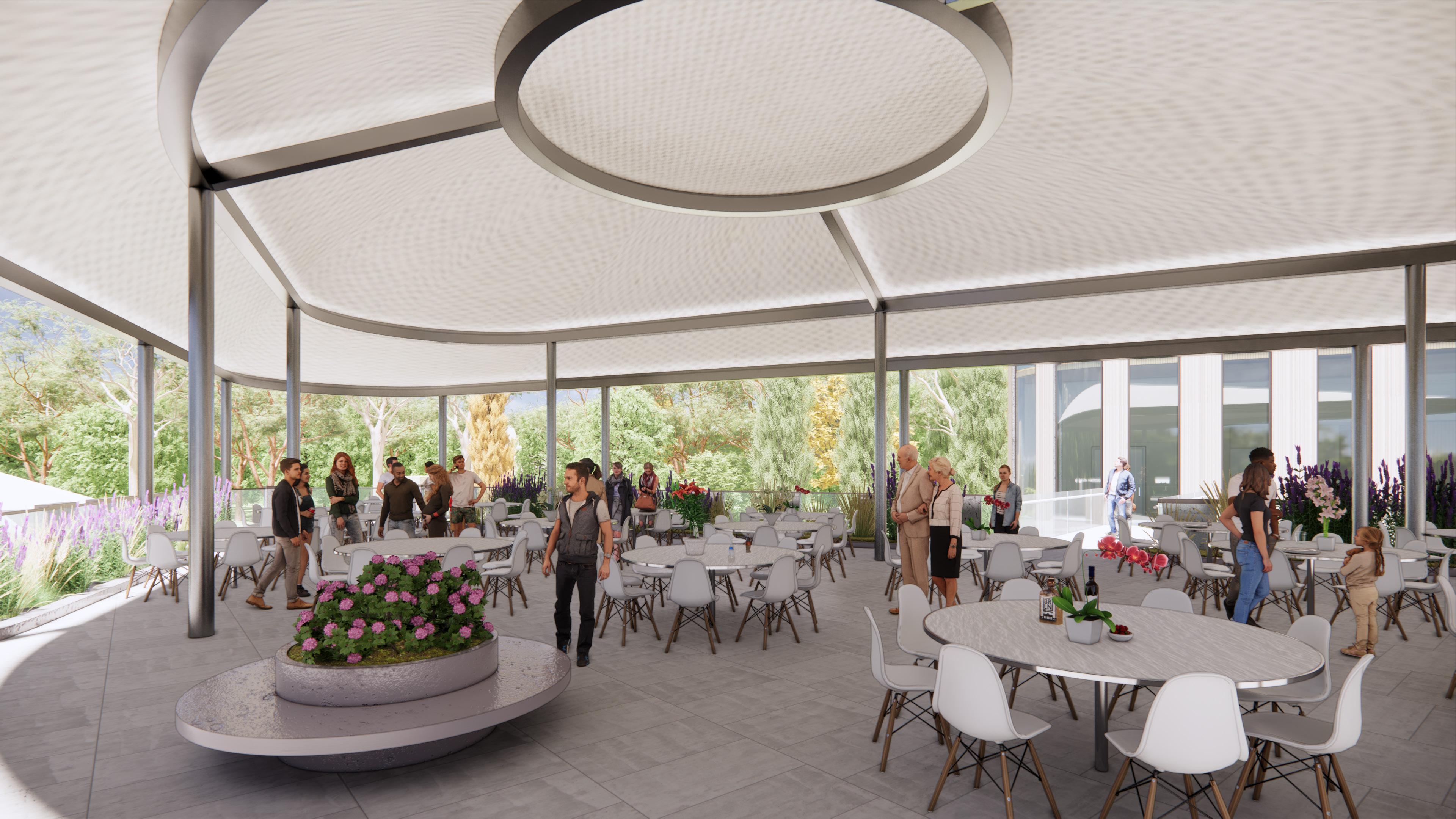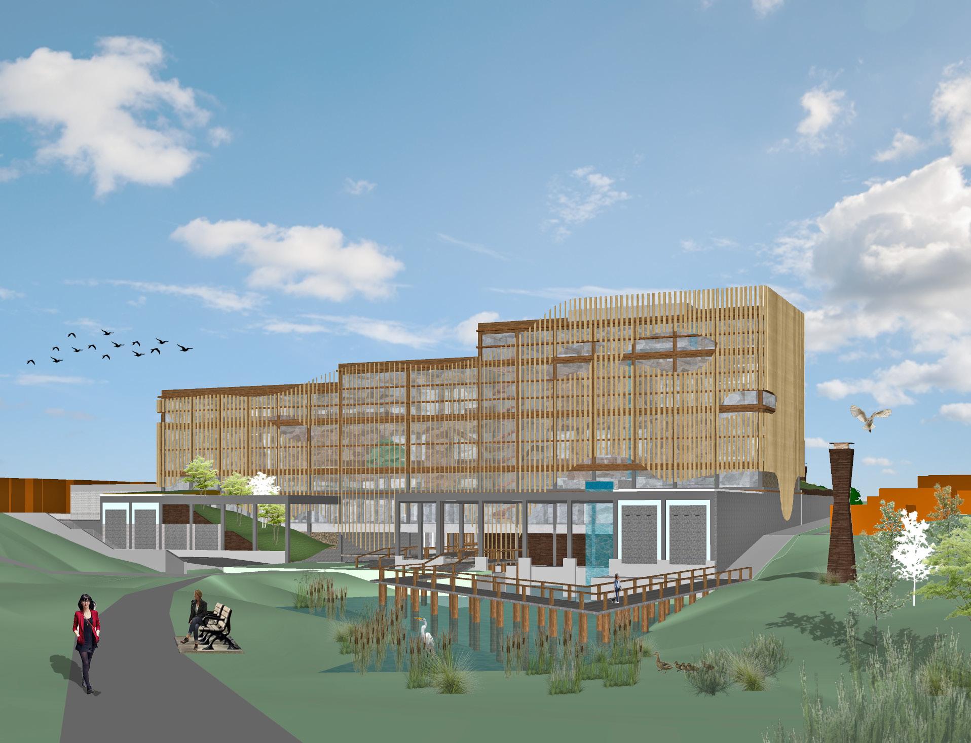 For its 50th Birthday Celebration, the Toronto Zoo is doing a full modernized revamping of its front entrance. Gone is the old greenhouse gift-shop and wooden gates, and in their stead is a completely revitalized plaza and educational, community welcome centre in partnership with the University of Toronto. Upon arrival, guests are first greeted by a playful River Otter Habitat exhibit, which serves as their starting point on their wildlife experience journey at the Zoo. Entitled as the Community Conservation Centre, this state-of-the-art facility hosts multiple classroom spaces, laboratories, expanded retail, admin offices, and educational conservation programs such as the turtle breeding pods. The sloped landscape also leads up to a VIP rooftop terrace, offering a canopy-covered event venue space with unique views of the Zoo grounds. Finally, the design of the new gates consists of a vibrant new sign and a sleek canopy, which set off visitors on to a brand new, re-energized experience at the Toronto Zoo.