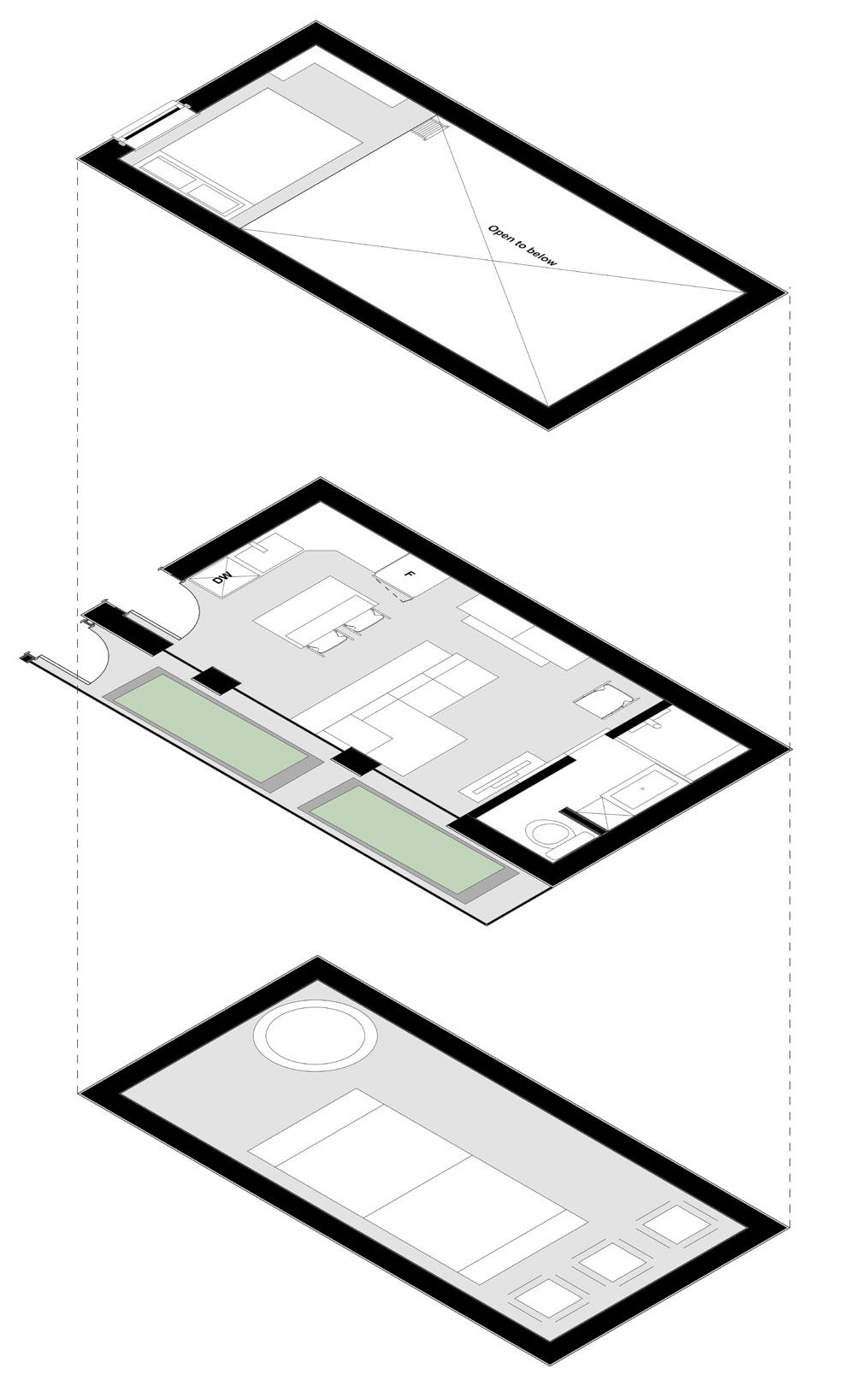 This project focuses on achieving a net-zero carbon footprint living, through built form and lifestyle. This project investigated sustainability features such as passive heating, through rammed earth construction, and air quality control, through an indoor/outdoor greenhouse attachment to the home. The design was inspired by sandwiching two thin elements in-between a thicker portion. The mechanical crawlspace and loft, become the sandwiching element between the main living space. In this project, I specifically worked on the design feasability of the rammed earth structure, unit layout, and the visualizations for the project. My group was focused on the general construction, mechanical elements, and the sustainability features within the project.