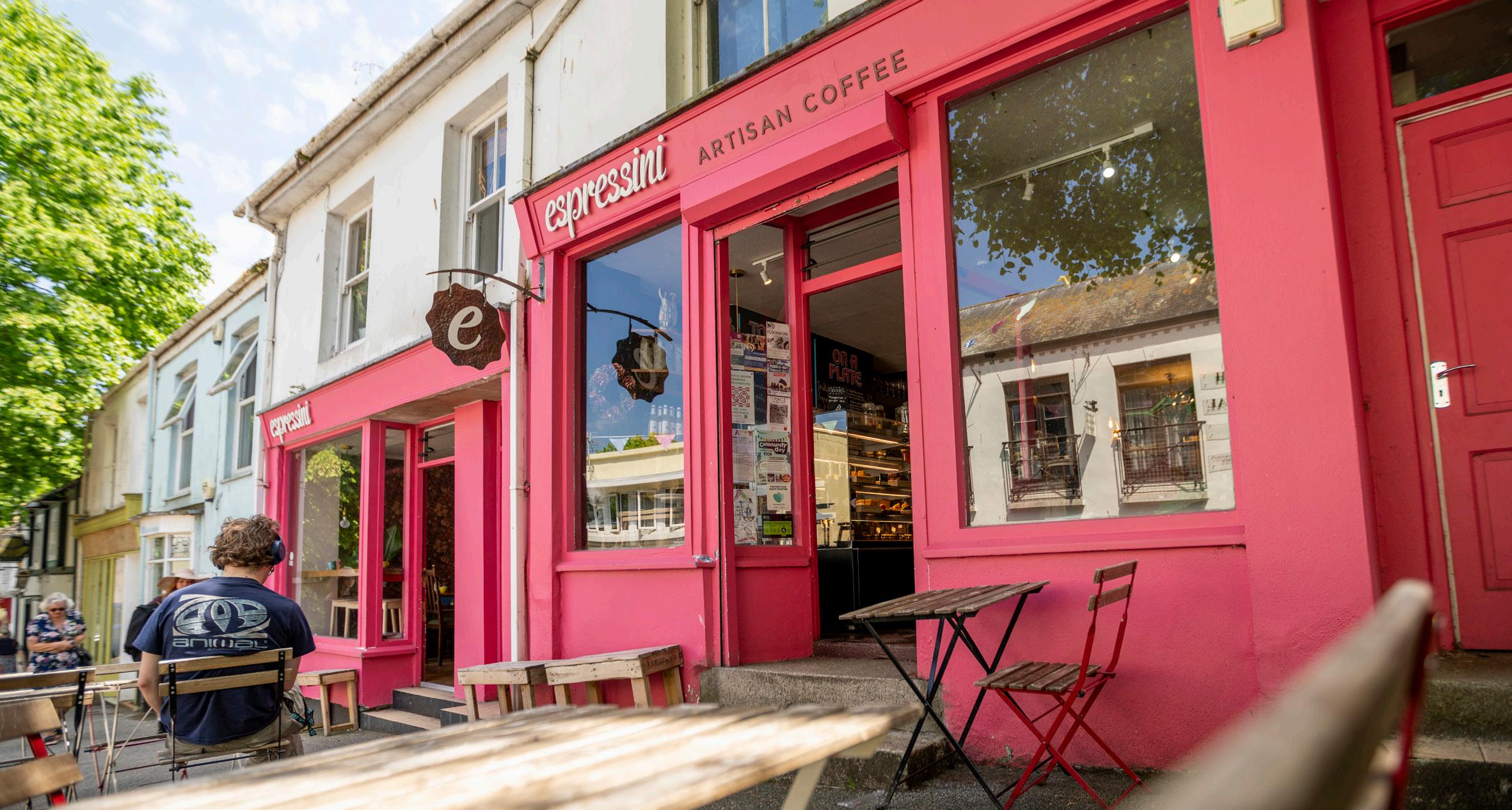 Falmouth, with its vibrant arts and maritime culture, was the perfect setting for this vision. The town’s eclectic energy matched the cafe’s ethos, and Espressini became a reflection of its surroundings—a blend of creativity and tradition, infused with the modern artistry of specialty coffee. Very few things say eclectic energy more than a neon pink facade.