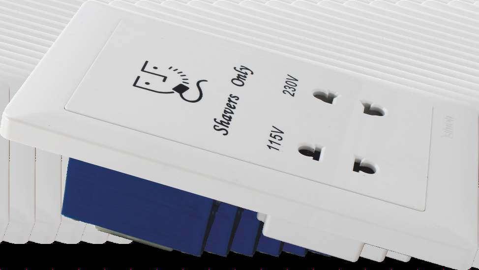 Heavy duty shaver socket for 110V and 230V input electric shavers in guest washroom helps users to connect shavers from di erent countries