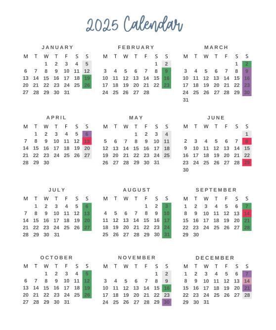 2 note pages at the end of each month