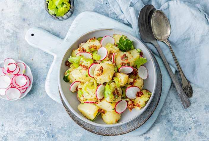 4 PORSJONER / 15 MIN. / LETT Hjemmelaget spicy rekesalat til pølser
