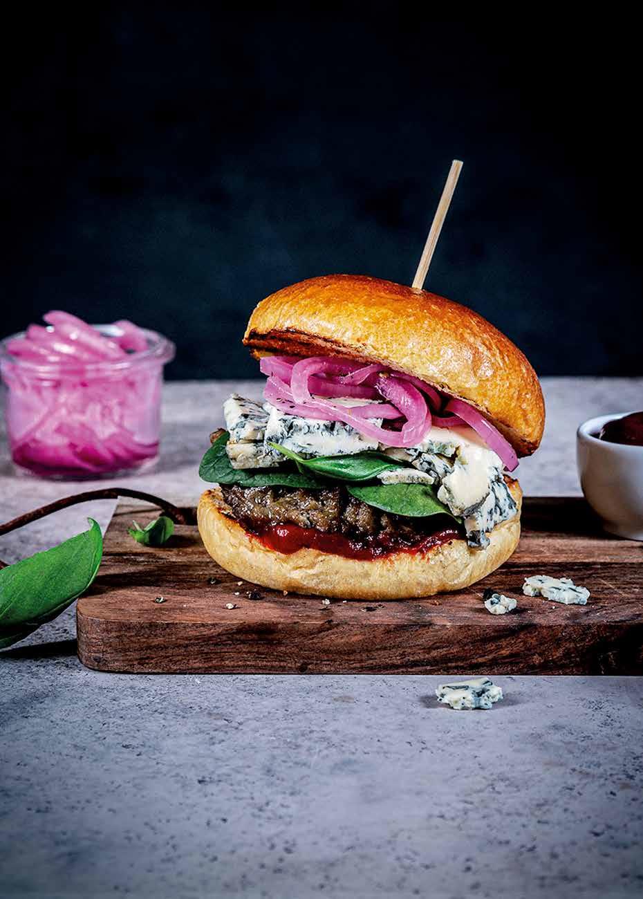 Grill burgeren over direkte varme til den har fått en fin farge og ikke henger fast på risten. Flytt burgeren til indirekte varme (med lokket ned) så snart den har fått fin farge. Hvis du skal grille burgeren kun på direkte varme, er det lurt å snu den ofte.