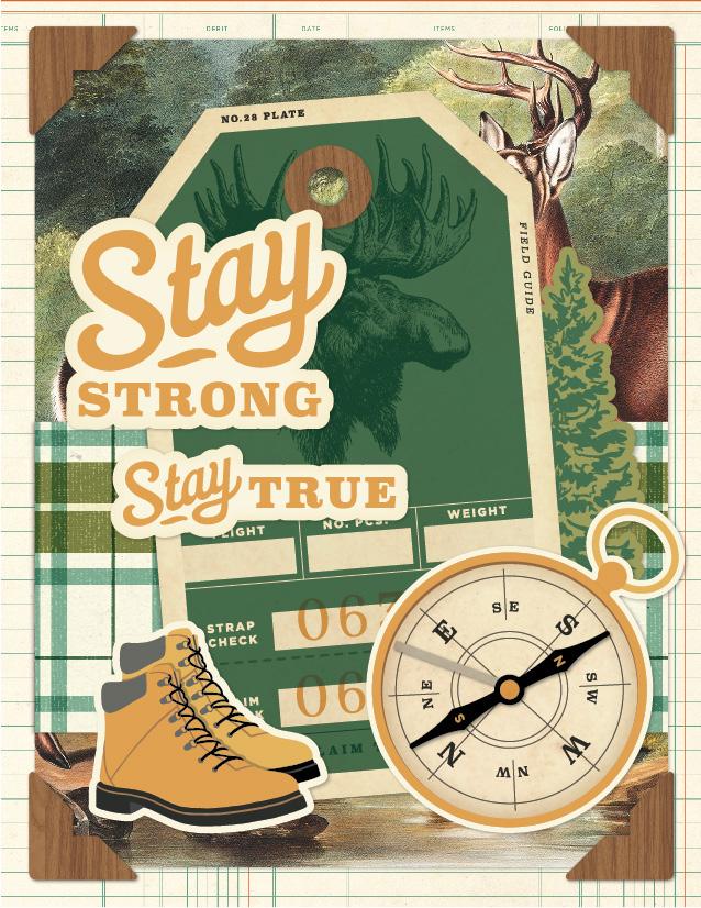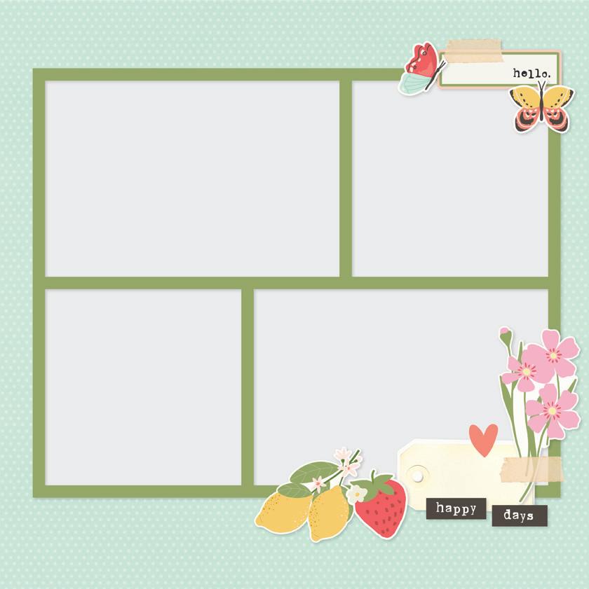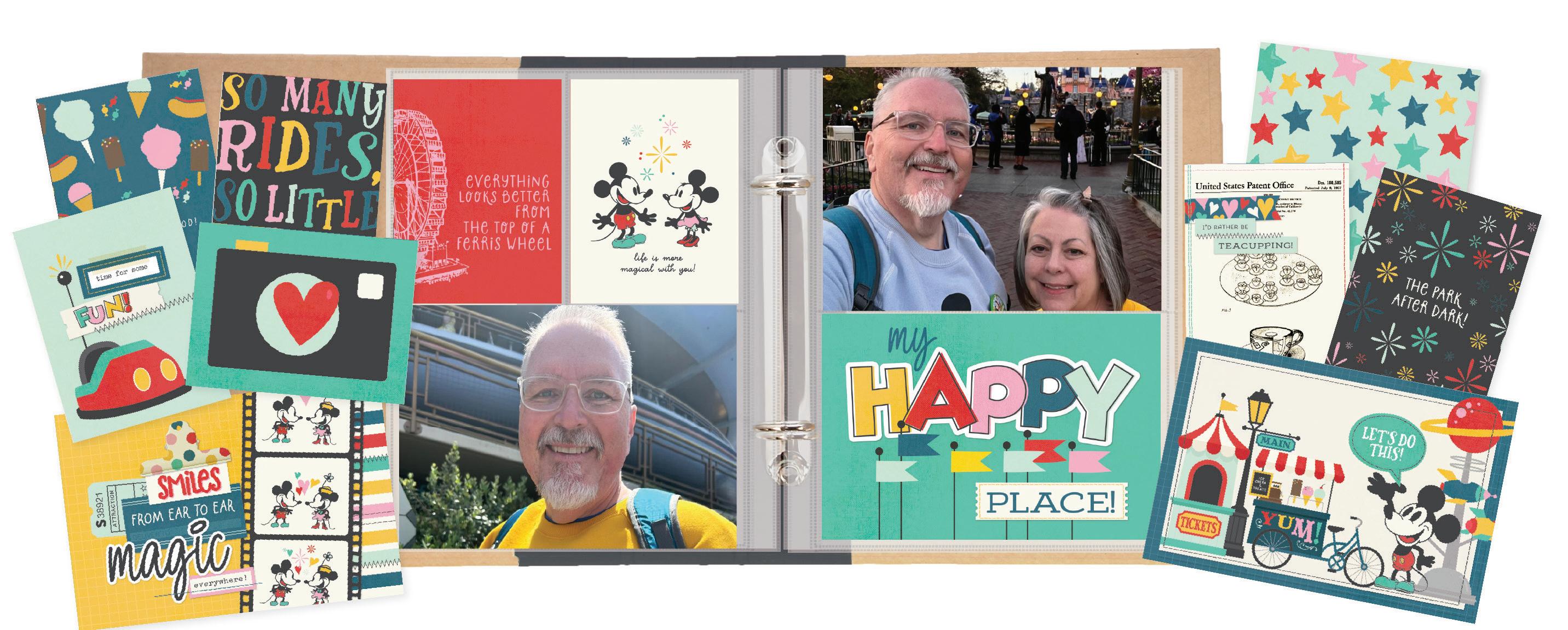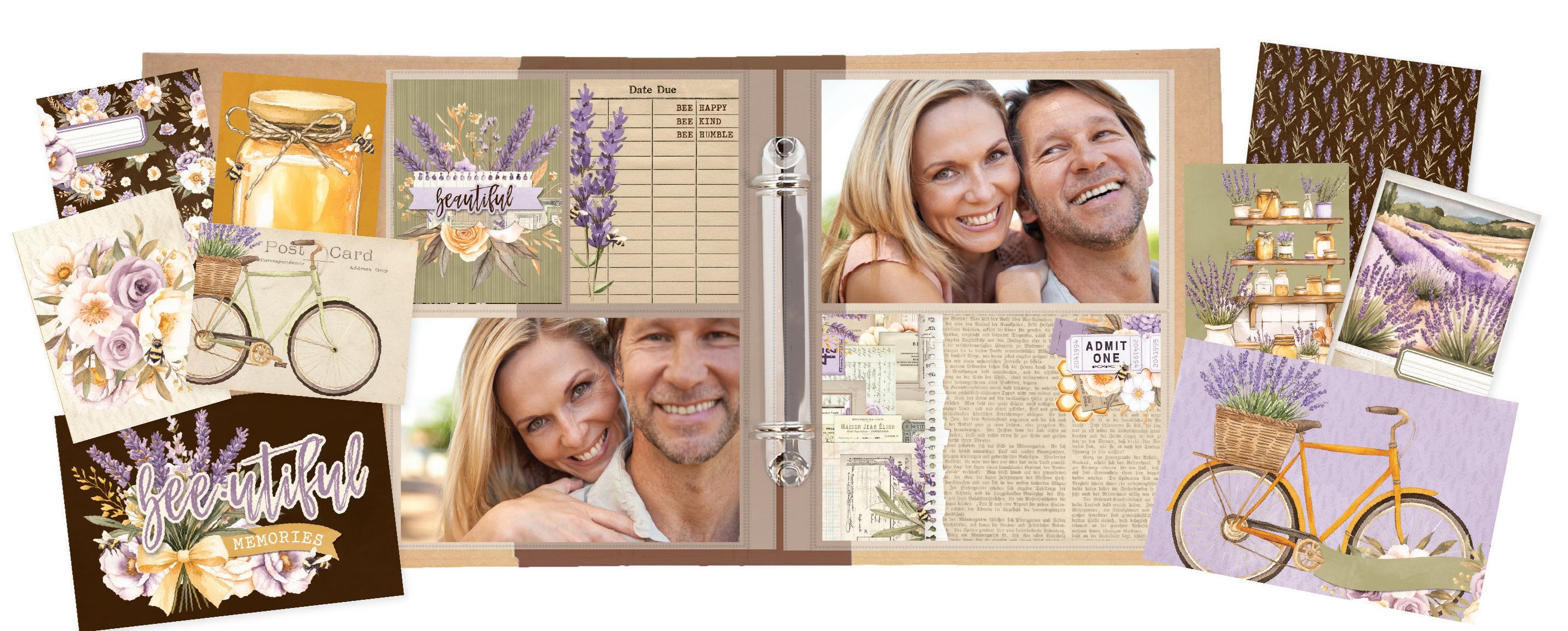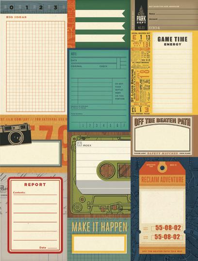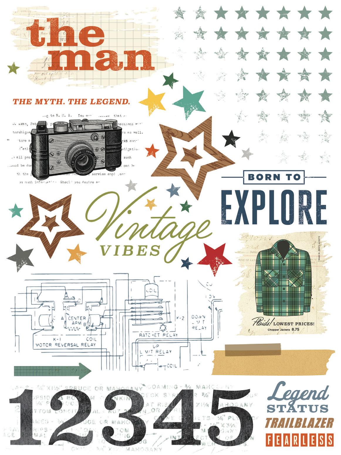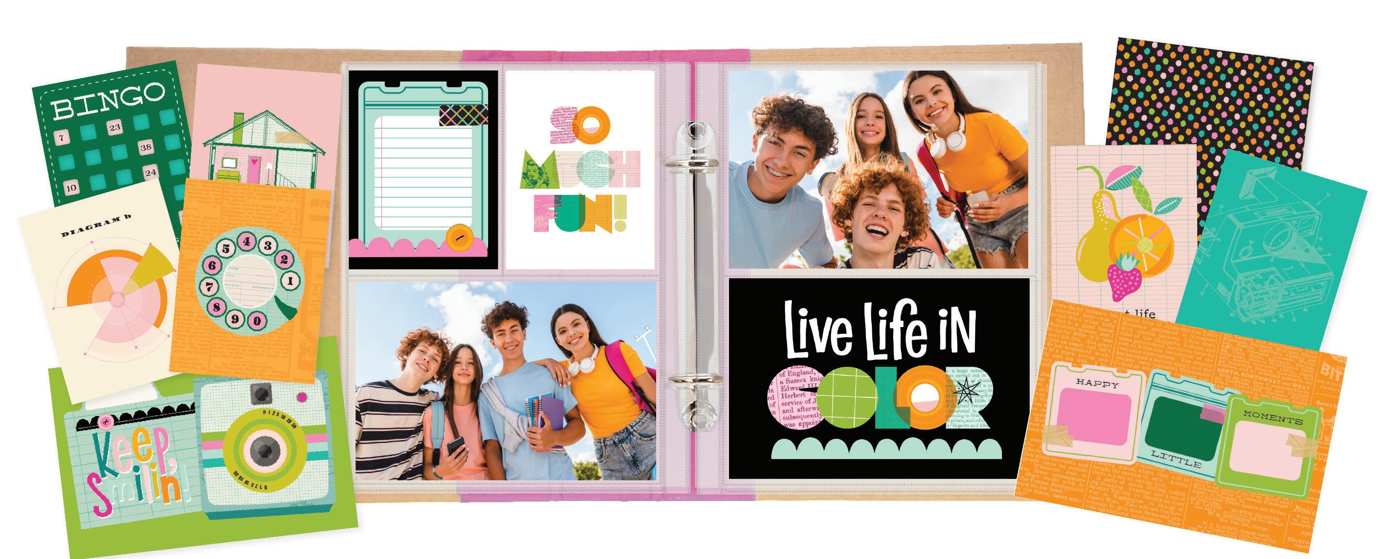 Everything you need to create 12 double-page scrapbook layouts. No cutting required! Quick and easy scrapbooking - just add photos and adhesive! Add your own twine, enamel dots, decorative brads, or foam adhesive for additional dimension.