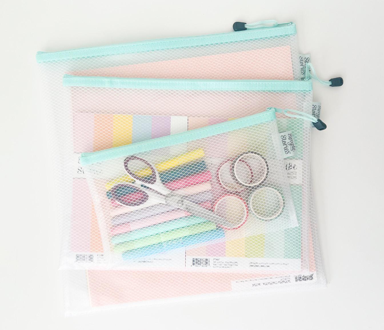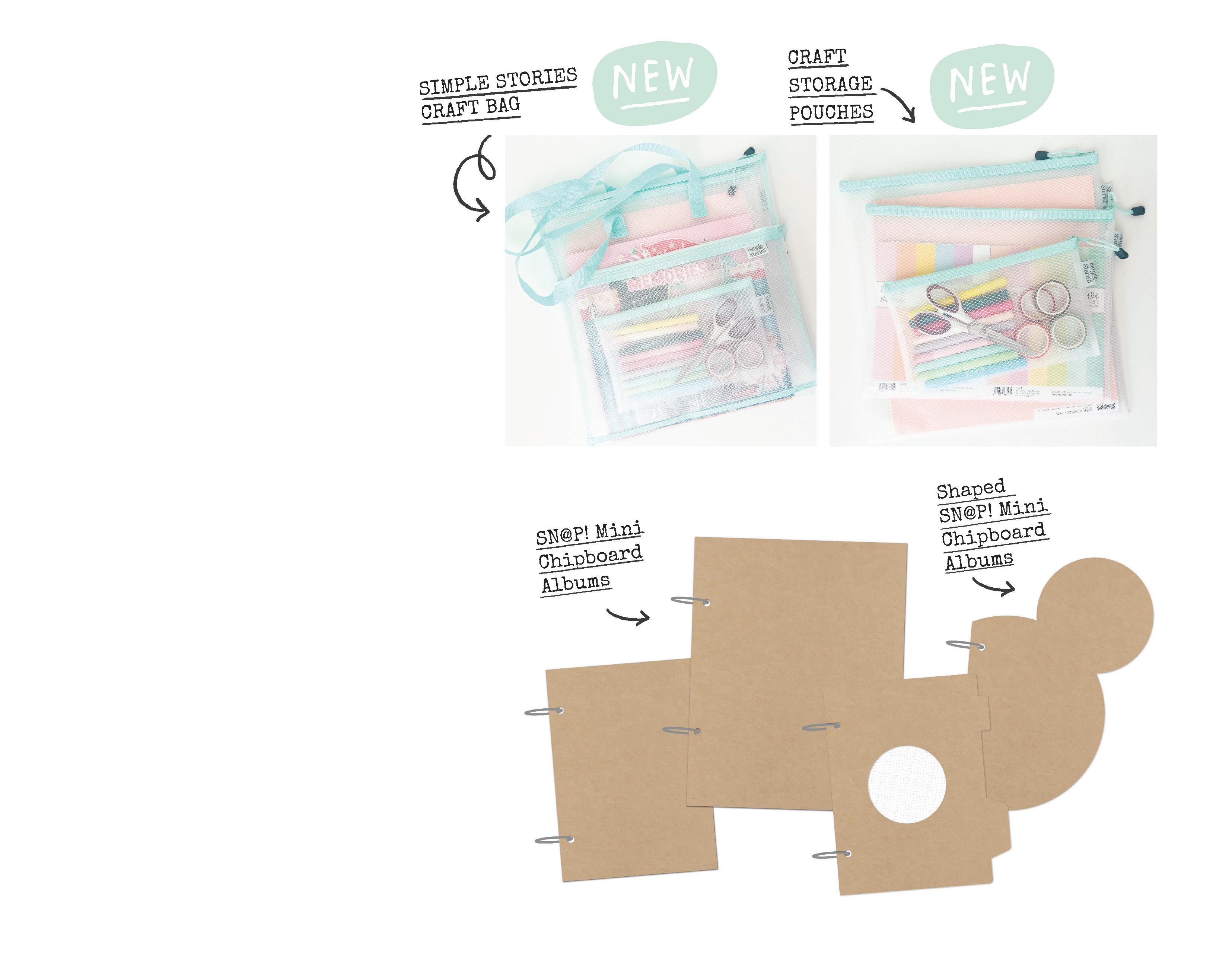 Keep your Simple Stories paper, stamps, embellishments, templates, albums, and more neatly tucked away in our brand-new zippered storage pouches and bag! Durable, clear, and oh-so-handy—they’re the perfect way to protect and organize your scrapbook supplies while keeping everything easy to find.