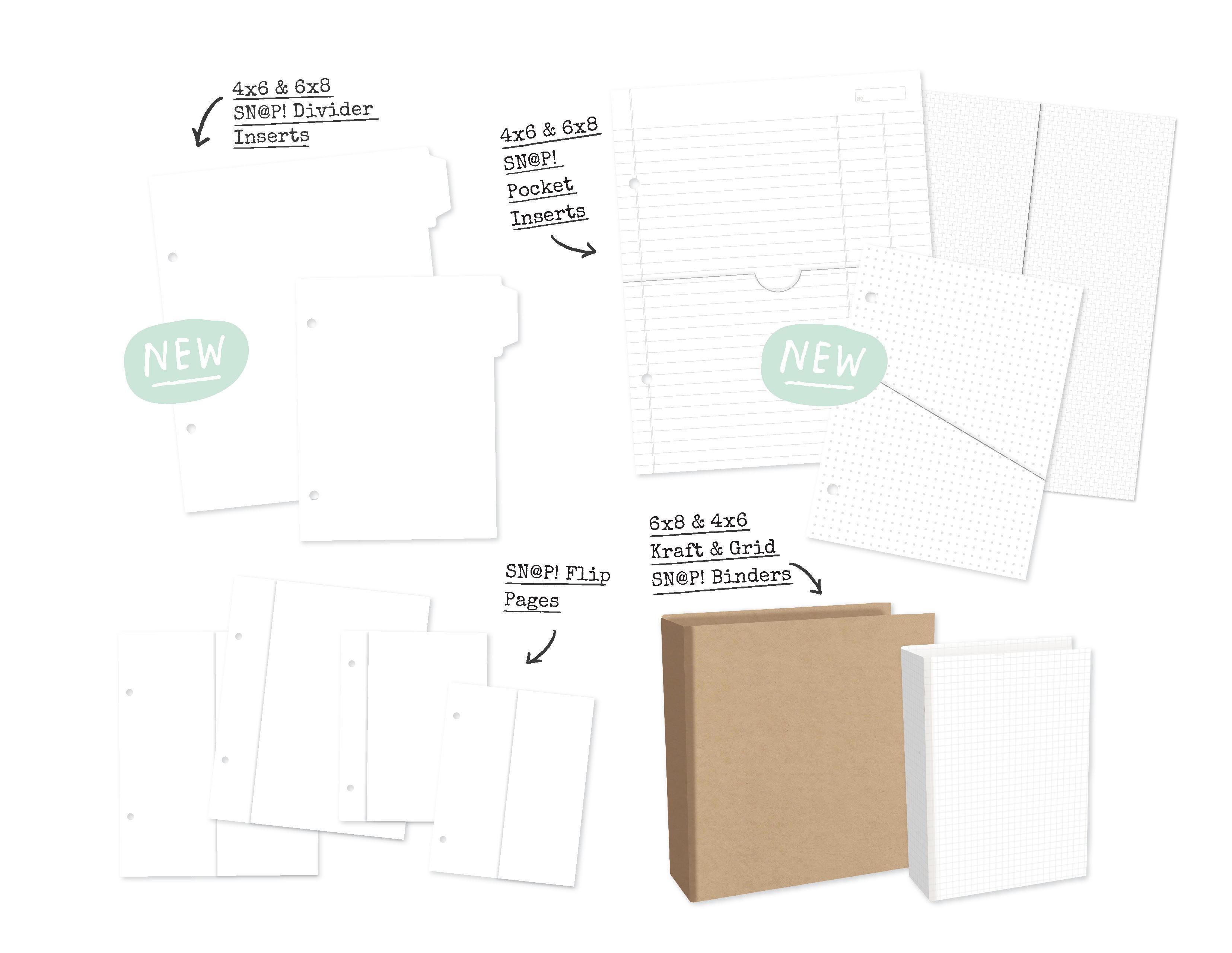 Make your memories truly yours with our 6x8 and 4x6 SN@P! binders and album insert pages. From tabbed dividers to handy pockets, these versatile pages come in a variety of designs and styles so you can mix, match, and customize your album exactly the way you want. Perfect for creating a project that’s functional, fun, and completely unique to you!