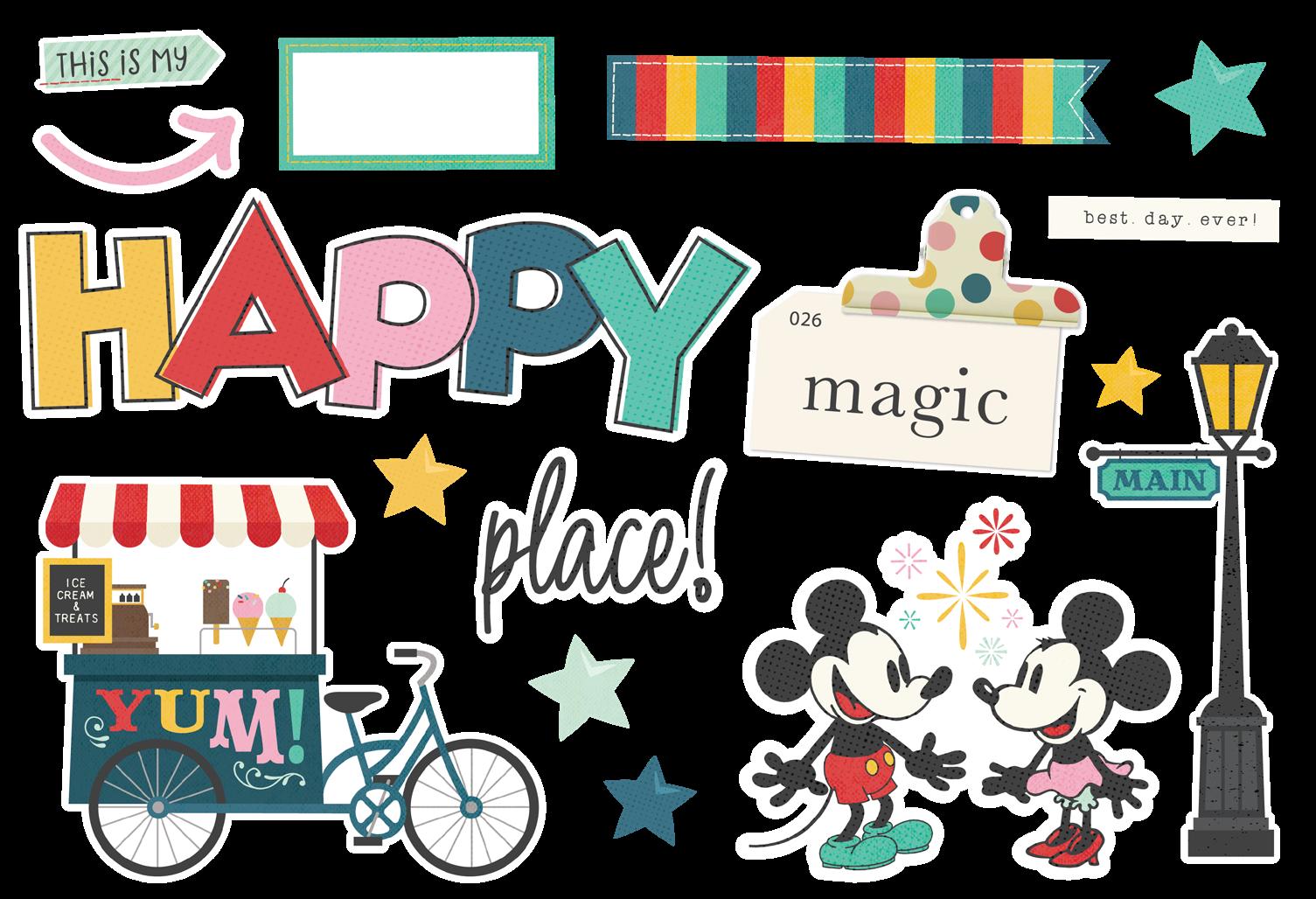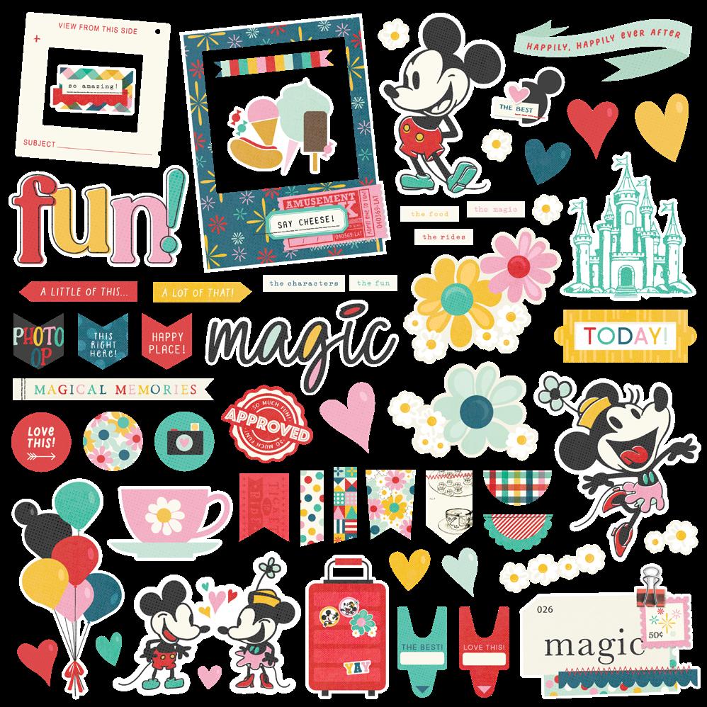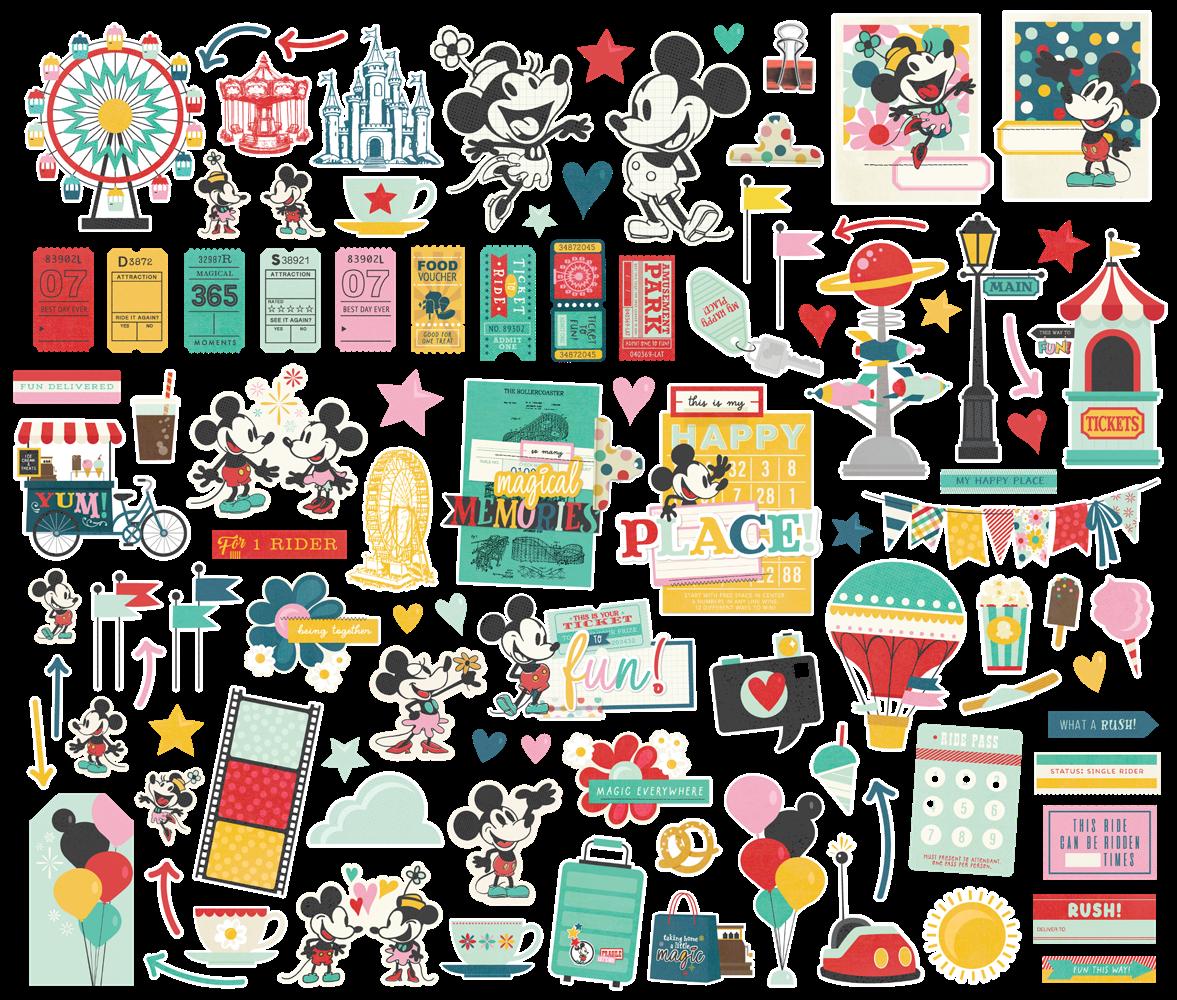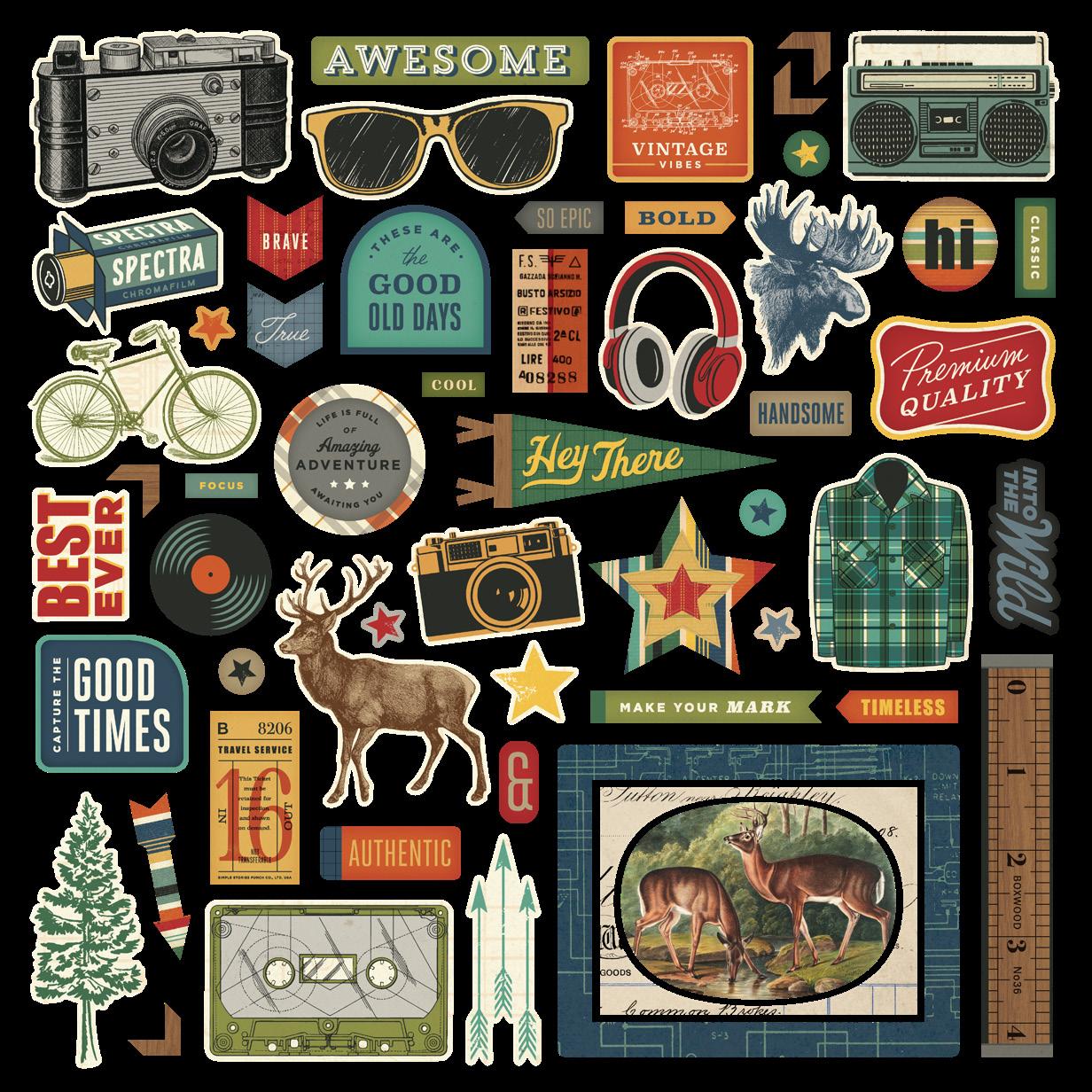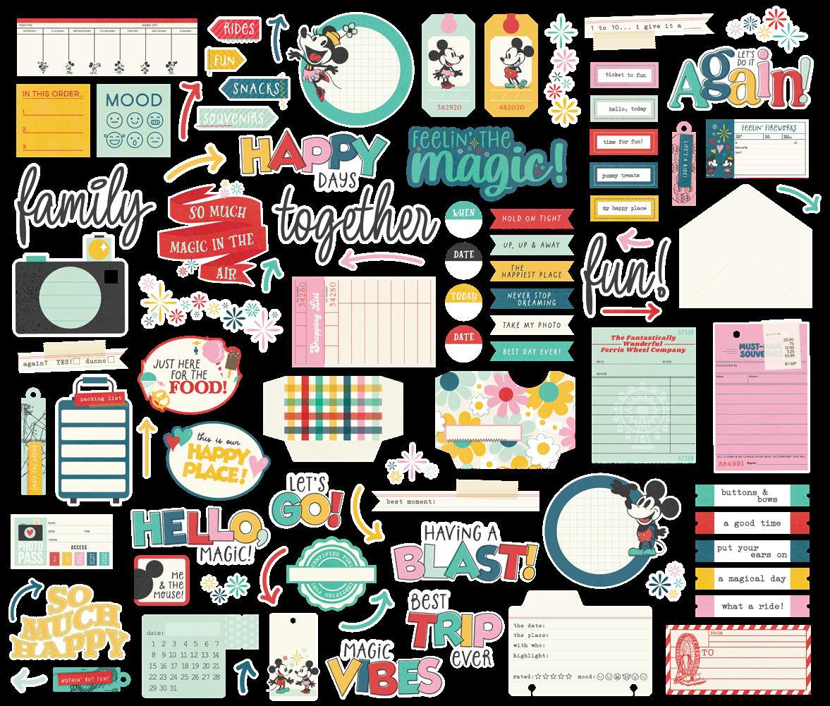 Cardstock including cut apart Tags and Element Sheets, 12x12 Cardstock Sticker Sheet - Icons (51), 12x12 Cardstock Sticker Sheet - Basics (77), Journal Bits (107), Page Pieces (21); 268 pieces
