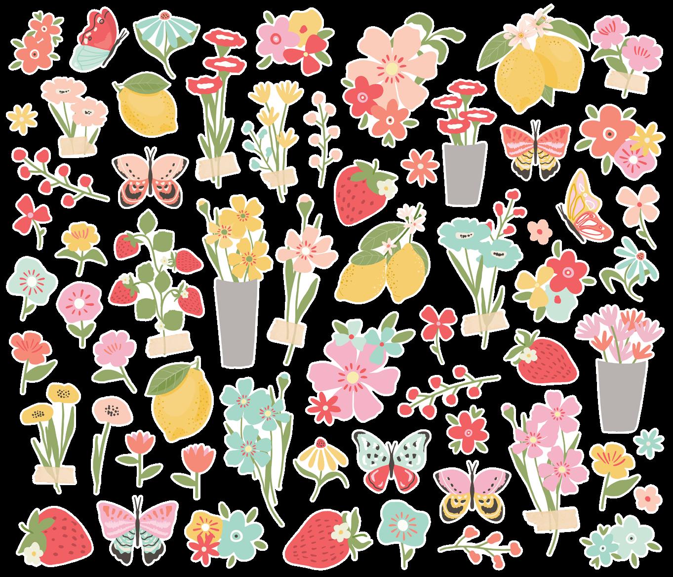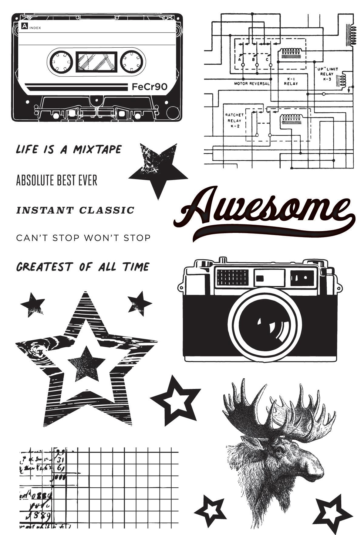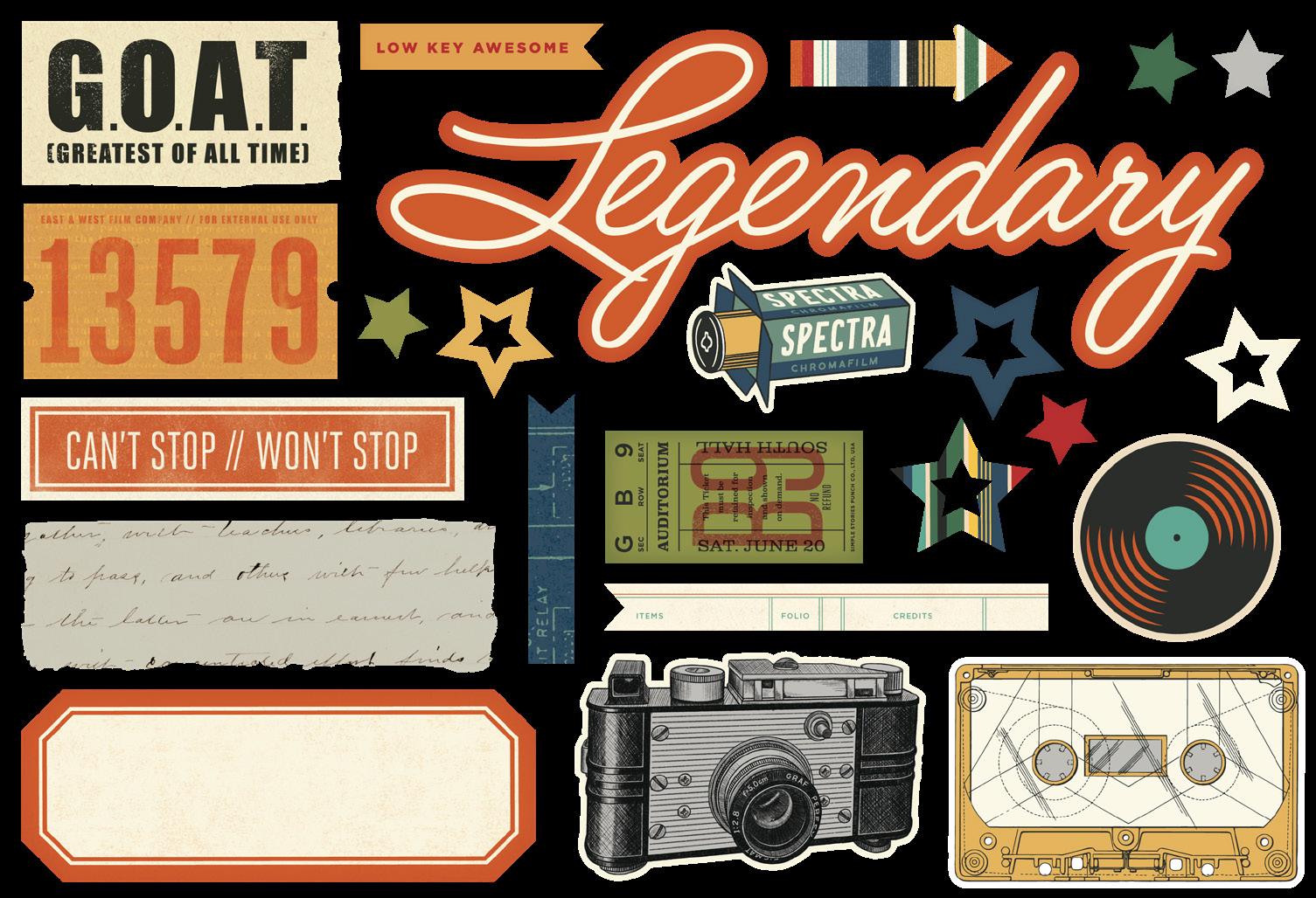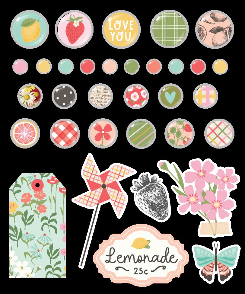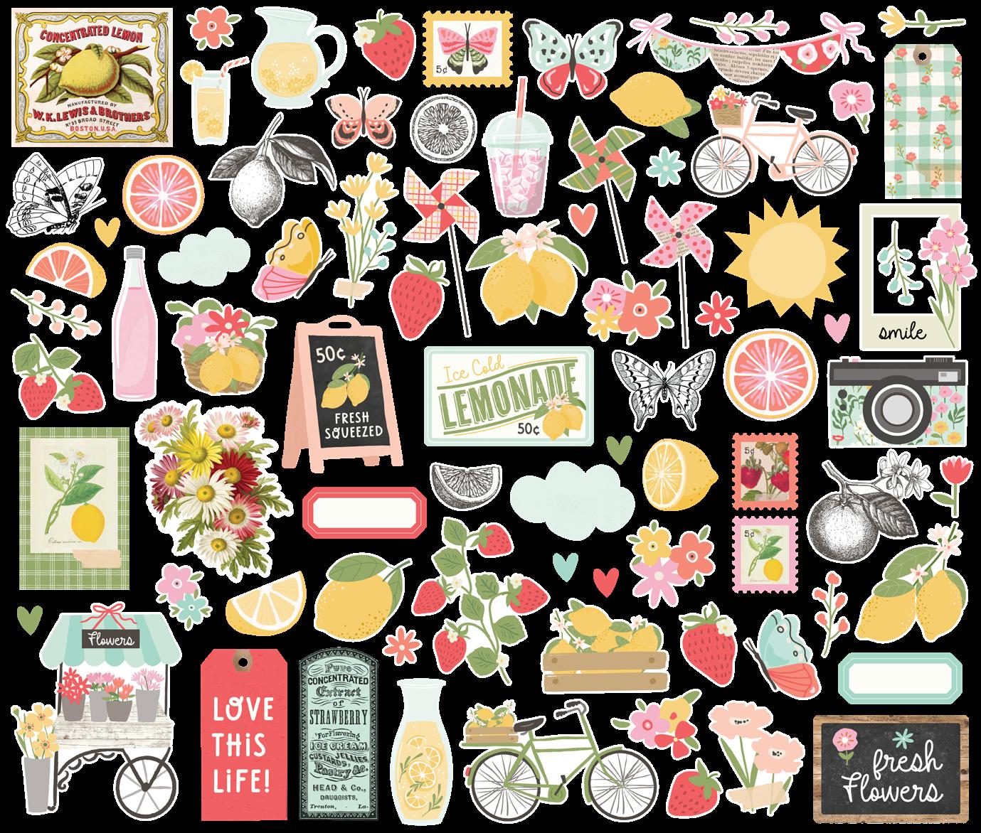 Cardstock including cut apart Tags and Element Sheets, 12x12 Cardstock Sticker Sheet - Icons (61), 12x12 Cardstock Sticker Sheet - Basics (81), Journal Bits (87), Page Pieces (17); 258 pieces