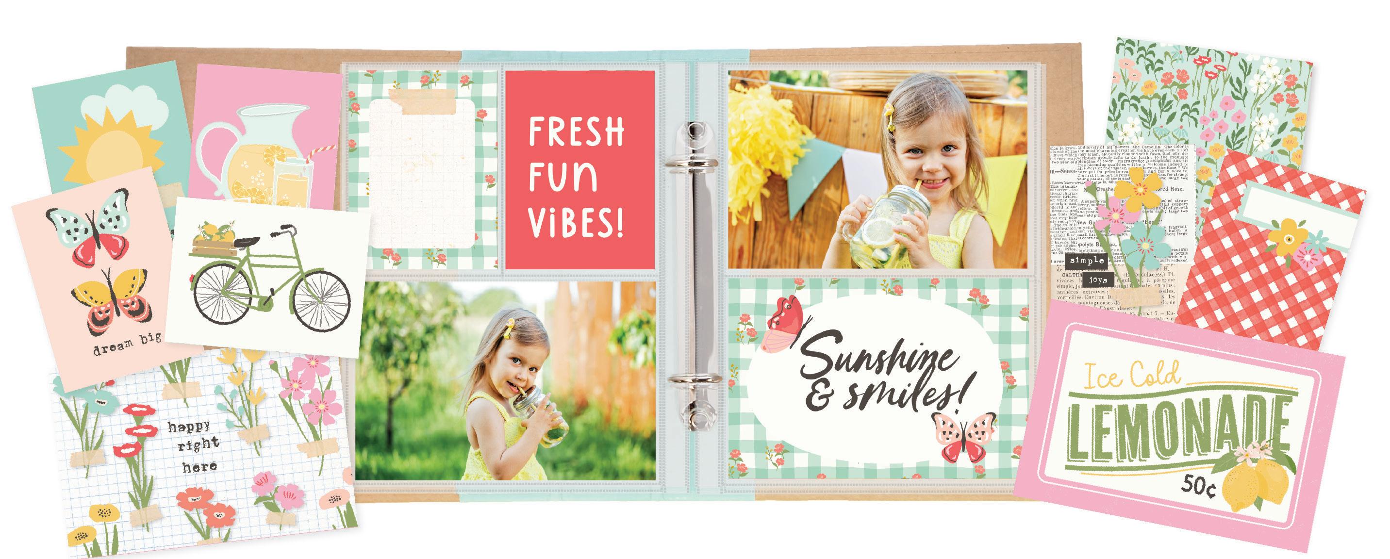 Everything you need to create 2 double-page scrapbook layouts. No cutting required! Quick and easy scrapbooking - just add photos and adhesive! Add your own twine, enamel dots, decorative brads, or foam adhesive for additional dimension. Simple Pages Page Kit includes: