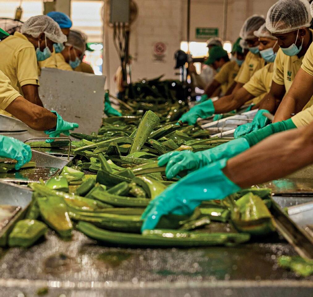 Op onze eigen aloë velden in Texas en de Dominicaanse Republiek wordt de gel uit het binnenblad met de hand geoogst. Deze wordt volledig hygiënisch verwerkt, zo blijven de versheid en waardevolle ingrediënten behouden.