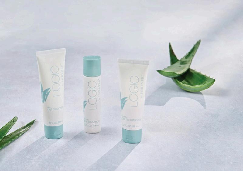 The system includes: Logic byForever aloe gel cleanser, Logic by Forever balancing aloe essence and Logic by Forever soothing gel moisturizer.