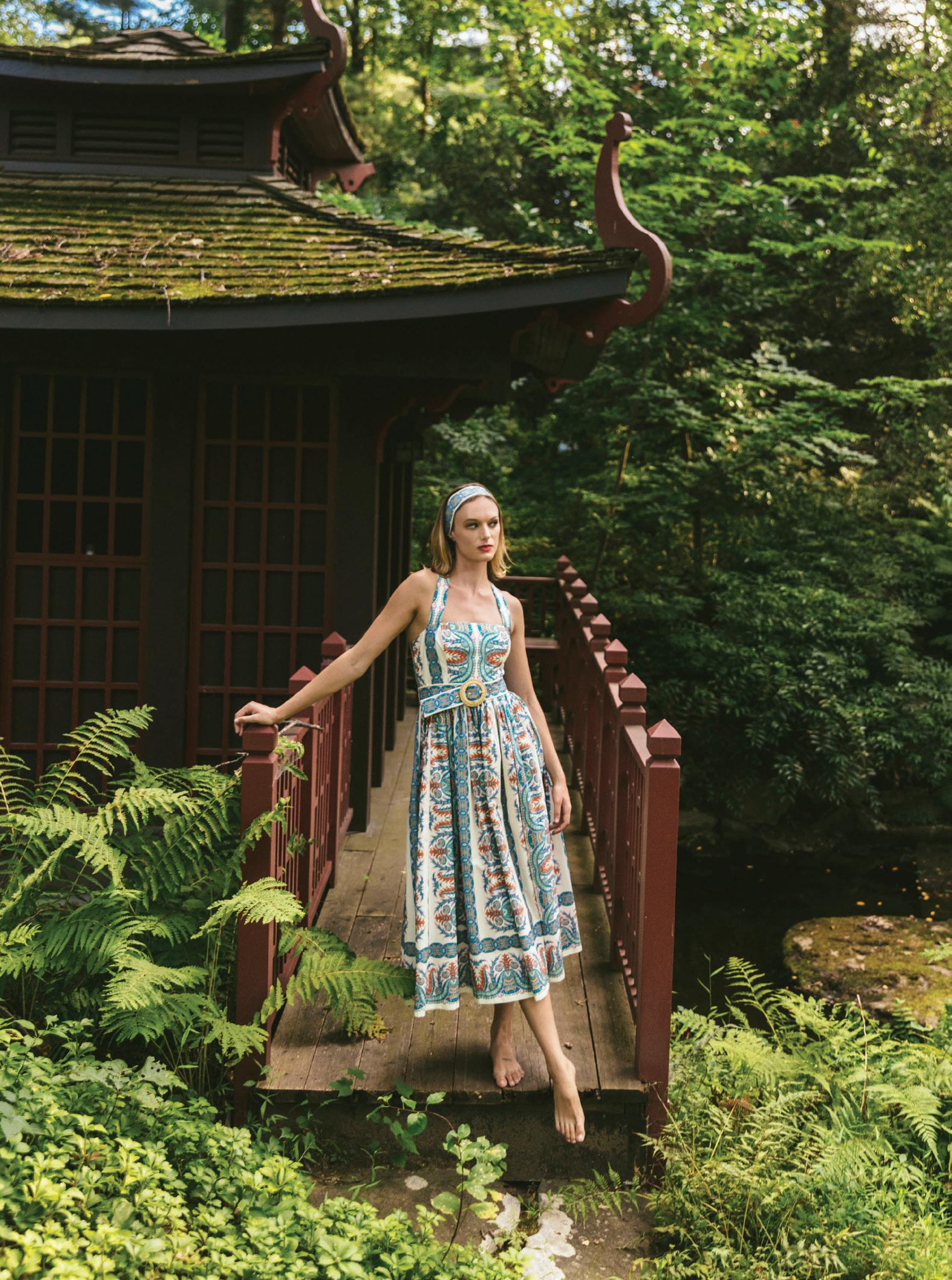 For the cover of our “Lights, Camera, Action!” entertainment issue, shooting at Assembly Studios, the massive 135-acre mixed-use film complex just a few miles north of Buckhead, was an obvious choice. We tapped talented rising star actress Colby Natasha Nixon, who plays Kat Richardson on CBS’s “Beyond the Gates” soap opera—also filmed at Assembly—as our cover model. (Read a profile on the Brookhaven resident’s rise to daytime soap stardom on page 74.) Our team gathered in the studio’s “Jewel Box,” an elegant event space used for hosting functions, to photograph a pair of spring-perfect looks, styled by the show’s costume designer and stylist Jeresa Featherstone, a recent transplant from Los Angeles.