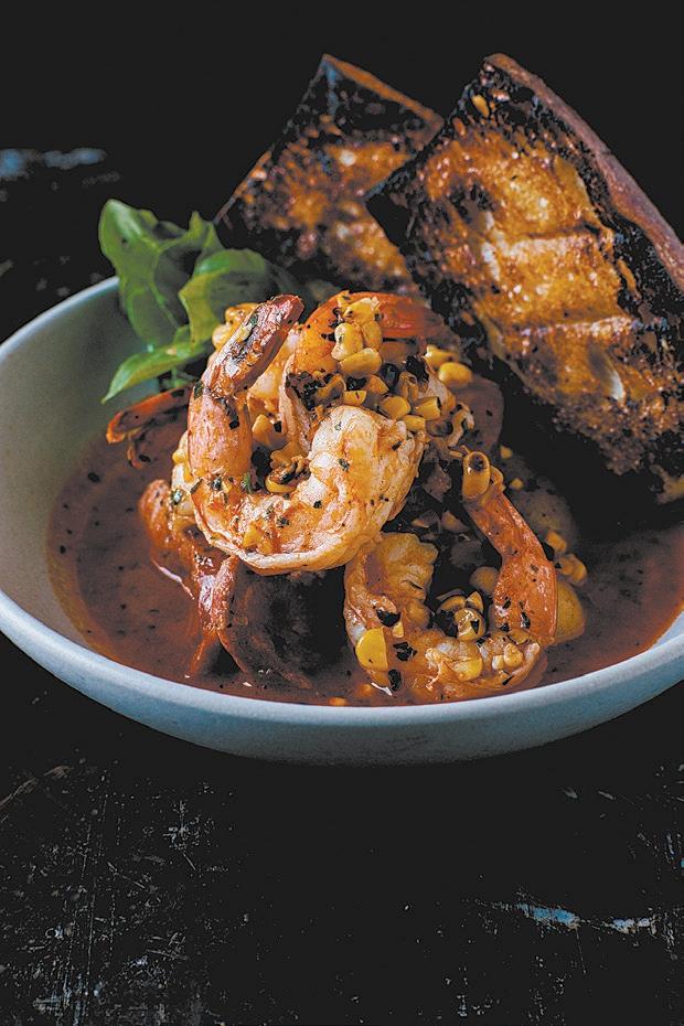 The decor honors the city, including a triplelayered wall of the Atlanta skyline and a collection of plates adorned with local icons. Lunch, dinner and weekend brunch menus present something for everyone, whatever the craving and definition of “comfort food.” Daily specials expand the weekday options. The Magnolia plates two eggs any style with creamy heirloom grits, crispy bacon, turkey sausage and a hearty biscuit. Shrimp and grits is a popular standard that evolves with added seasonal ingredients. The best-selling faux cheval burger is packed with juicy umami. Bucket O’Chicken, which serves up to four, showcases crispy-juicy segments of fried bird alongside two sides like collards and mac ’n cheese. Chicken shawarma has strips of spicerubbed poultry with hummus, pita, cucumber and tomato salad plus tzatziki sauce. Butter cake, a merger of bread pudding and caramel apples, is so popular it can sell out.