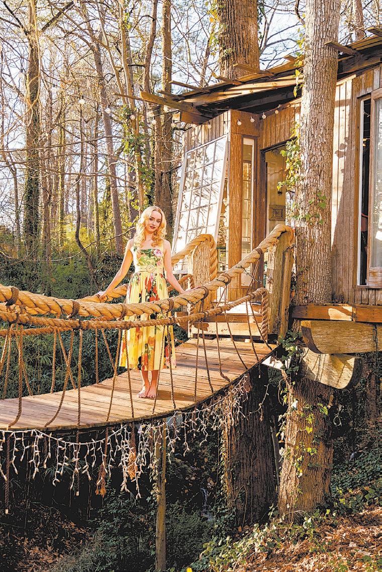 Click Atlanta model Chloe settles in for some solitude at a Buckhead treehouse, available for rent. PHOTO: Patrick Heagney