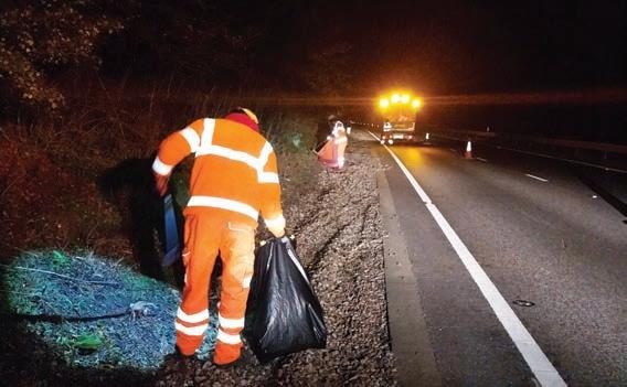 Colchester City Council cleared 1.65 tonnes of waste from the A12 over three nights, beginning 27 October. The council made use of overnight road closures, enabling them to safely work at the roadside to collect a large amount of fly-tipped waste and littering.