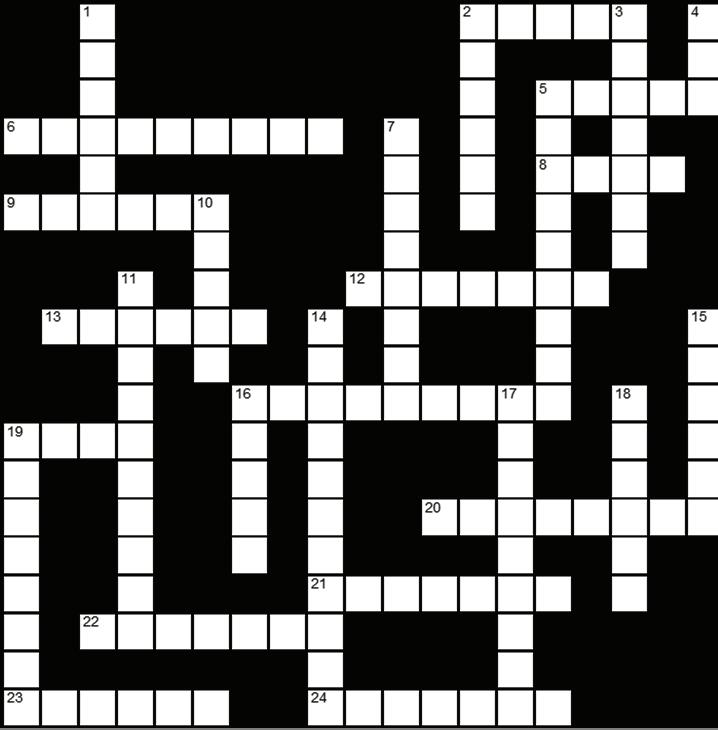 Across 2 Santa's helpers (5) 5 _____ Christmas! (5) 6 _____ ____ fairy (5,4) 8 Frozen rain (4) 9 Circular decoration (6) 12 Santa's means of entry (7) 13 Tree decoration (6) 16 Striped sweet (5,4) 19 Tree topper (4) 20 Film starring Martin Freeman (8) 21 Santa's lead reindeer (7) 22 Kris _______ (7) 23 Dr Seuss's green Christmas villain (6) 24 Little _______ Boy (7)