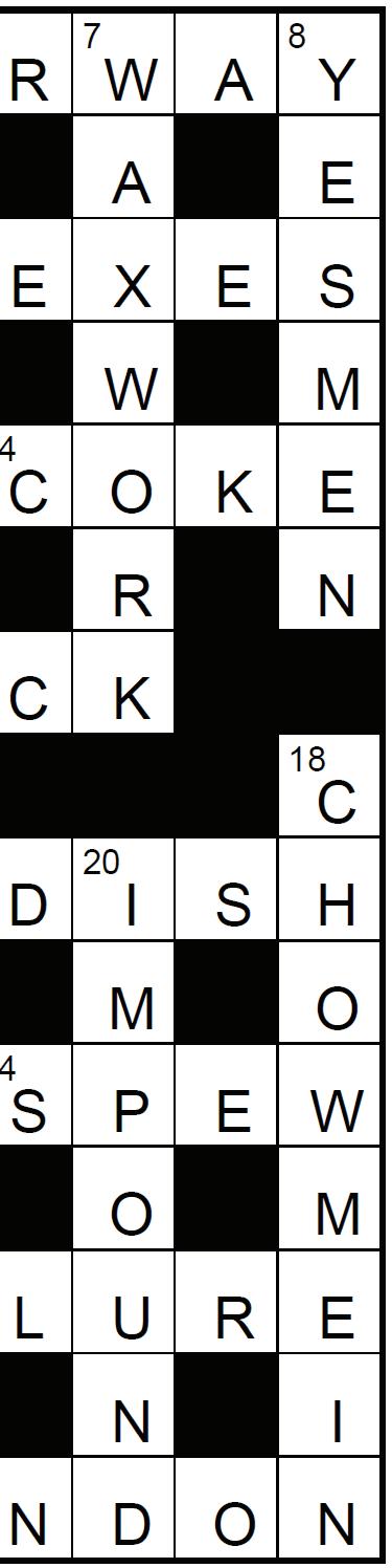 a weather map (6) 18 Tramp, drifter (6) 19 Drug, sedate (4) 20 Trickle, plop (4)