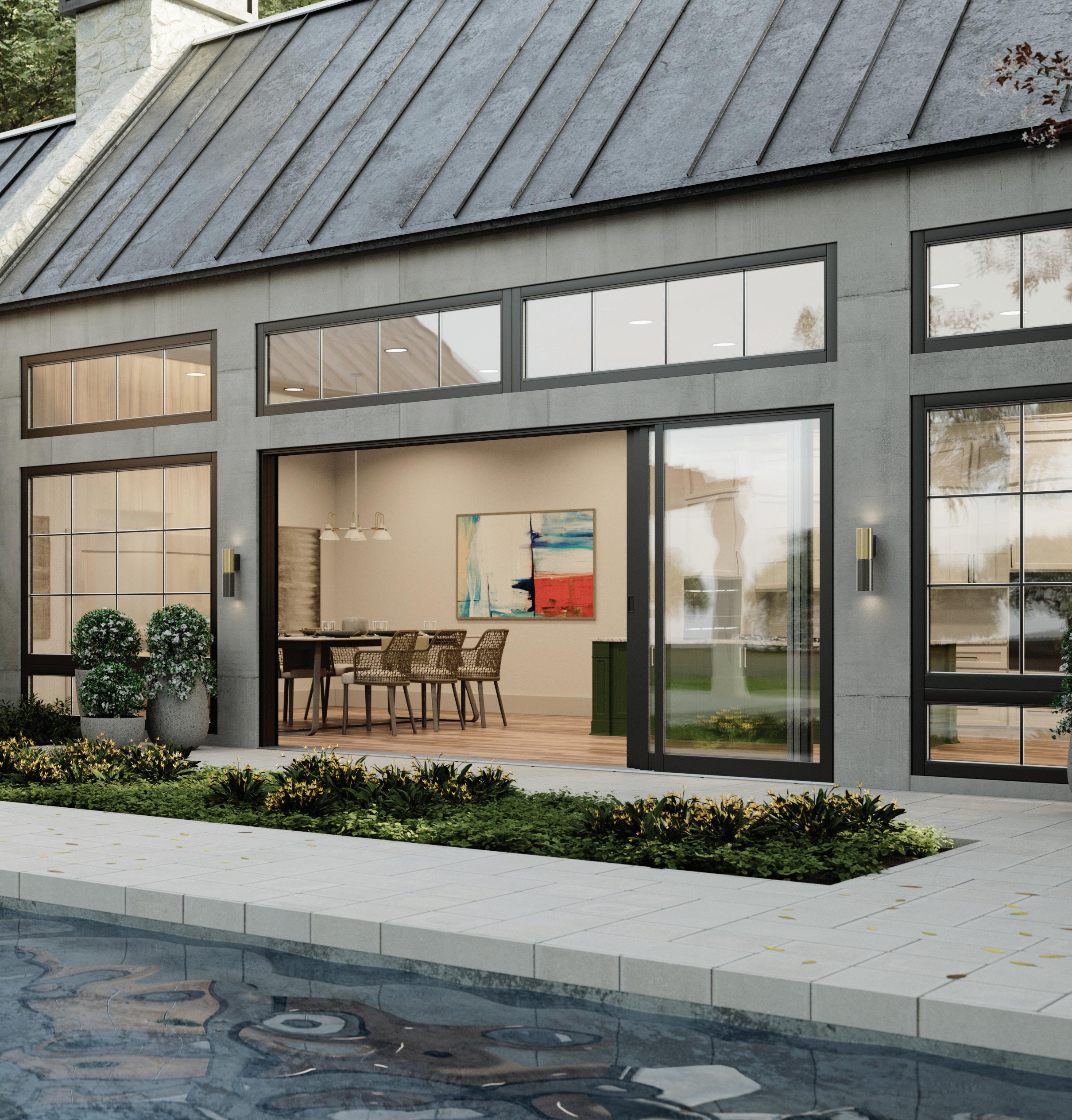 Easily blend indoor and outdoor living spaces with Veris sliding glass door systems. Enjoy expansive views thanks to a flexible design with large panel sizes and multiple configurations. Options for built-in pocket doors deliver completely unobstructed views when fully opened.