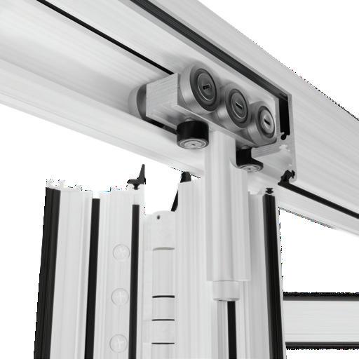 Engineered for smooth operation, polymer rollers quietly move door panels with precision ball bearings for sustained durability.