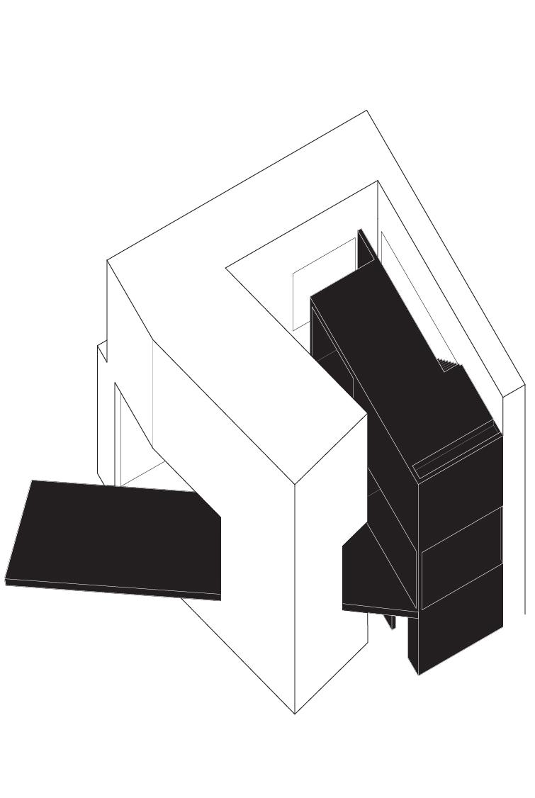 redefine the way we move, and explores how we integrate them into our living spaces. In addition, the house has a clear separation of living and working spaces. There are two zones, and living spaces are shown with black poche. This visual and spacial division establishes a clear division between work and home which is crucial for maintaining mental well-being, reducing burnout, and fostering a healthy balance between professional and personal life. The connection between worklife balance and electric vehicles lies in the shared commitment to sustainability and a forward-thinking lifestyle. Electric vehicles have the potential to enhance work-life balance.