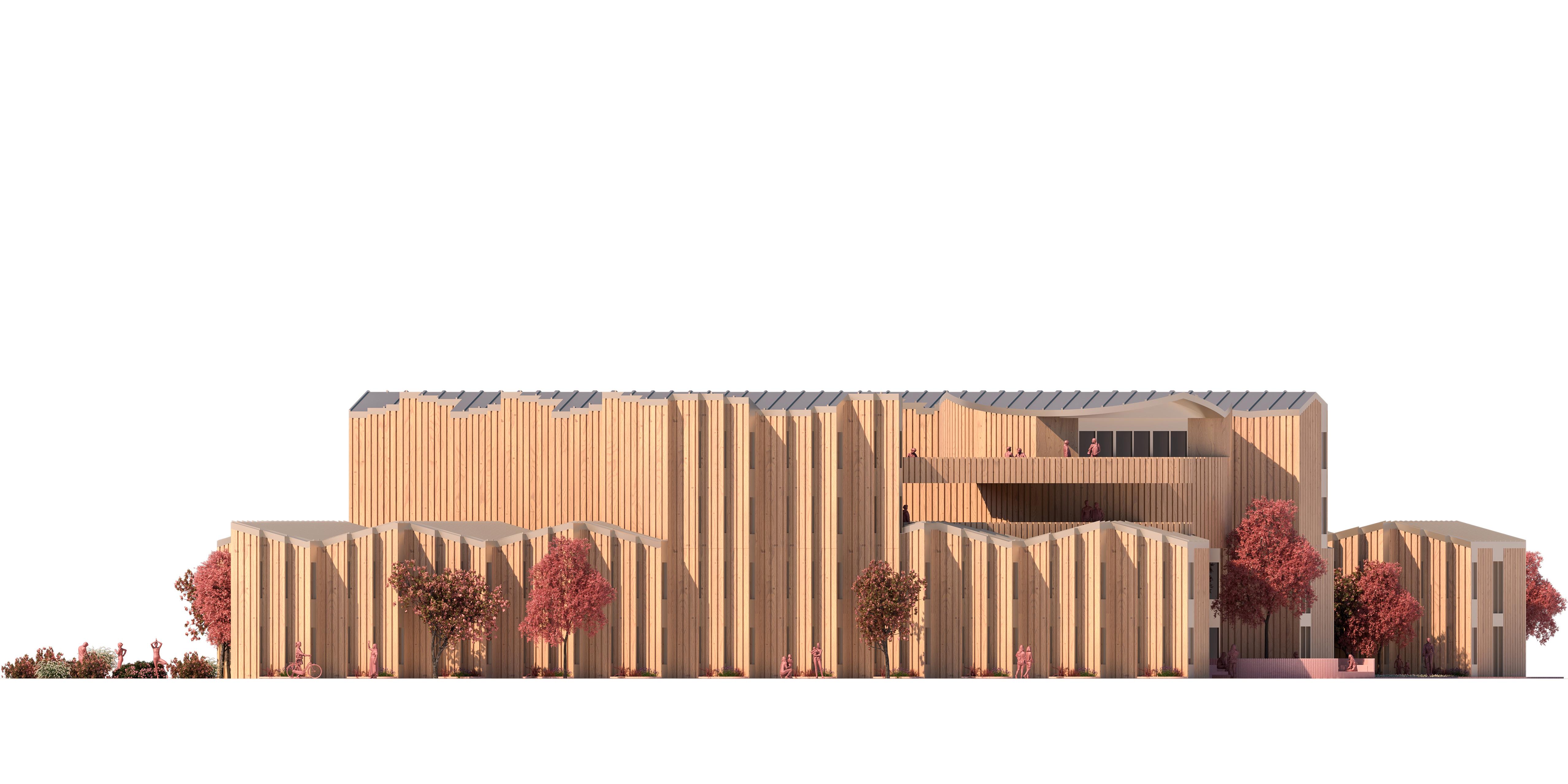 Innovative and dynamic, this housing project transcends traditional concepts. Nestled within modular pixilated cubes, the residences exhibit a unique blend of contemporary design and sustainability. These cubes, arranged in a bar-shaped building, house a vibrant public space hosting farmers markets and community events. As residents enjoy their modular living, the cubes gracefully crumble from the core, giving way to an undulating park. This transformation symbolizes the synergy between urban living and nature, offering a seamless transition from structured living spaces to an organic, communal landscape. The project stands as a testament to harmonizing modernity, community engagement, and ecological consciousness within an architecturally striking framework.