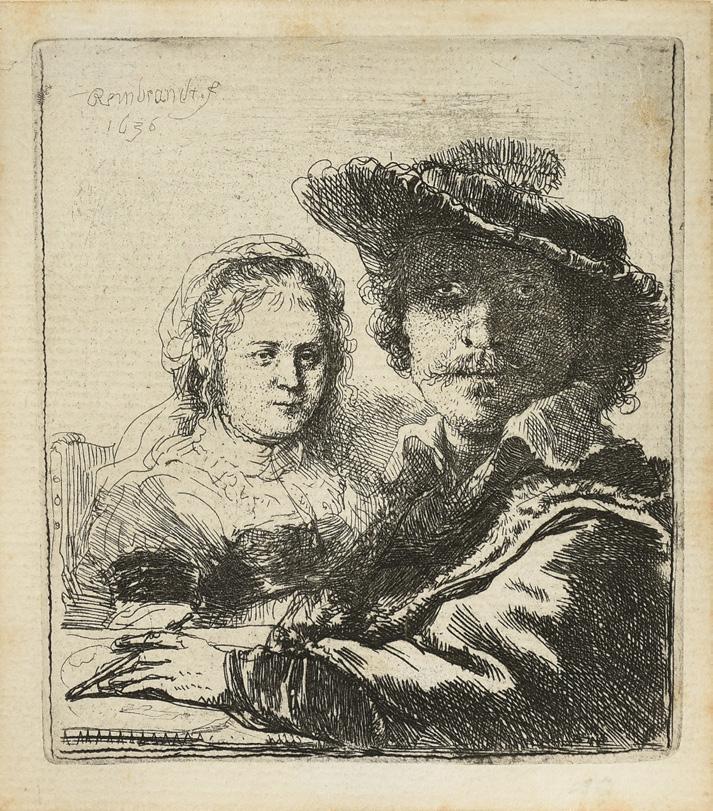 “Self-Portrait with Saskia,” 1636. 4 3/4˝ x 4 1/8˝