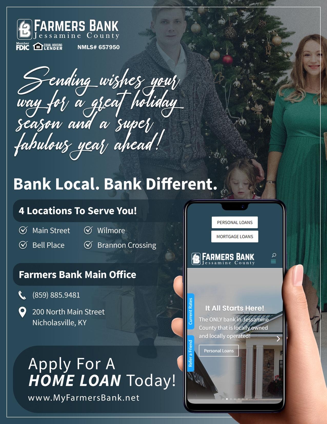 But, what exactly, is the "warmth" of Christmas spirit? I think it's love. Love is at the center of gift giving, donation giving (p 16), family dinners, and classic movies (p. 28) on the couch under the softest blanket in the house Love is the cup of hot cocoa with tiny marshmallows, while not thinking about calories, and just admiring the festive mug that hugs it This year, I want to stress how imperative it is to shop local in Jessamine County for your family and friends. The local businesses who followed their hearts and started something here at home need our support Remember to visit our local stores first before going to big box stores, because our local business owners will use that money to shop for their own Christmases Throughout this edition, you'll find advertisements from local businesses who would love to see you and earn your business, make sure you tell them hi from Jessamine County Living!