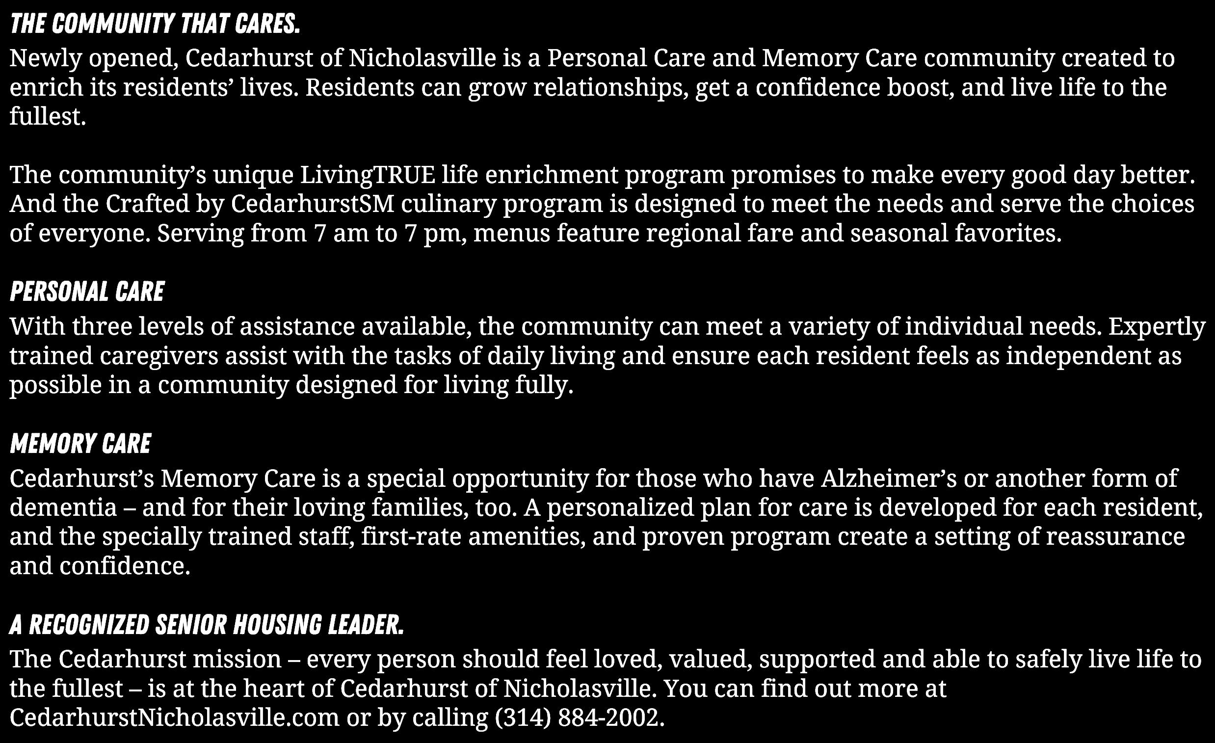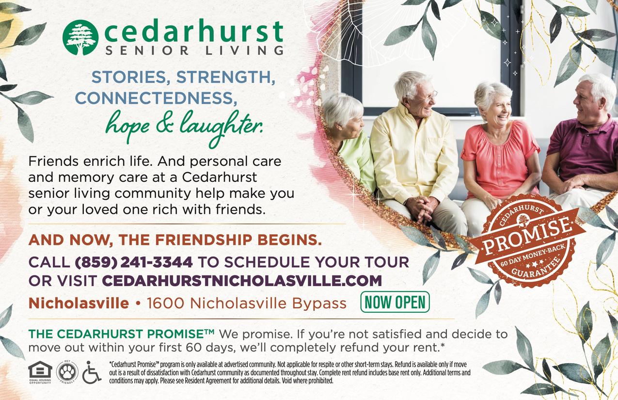 Cedarhurst Senior Living 1600 Nicholasville Byp. Nicholasville, KY 859-484-7711 | Cedarhurstliving.com